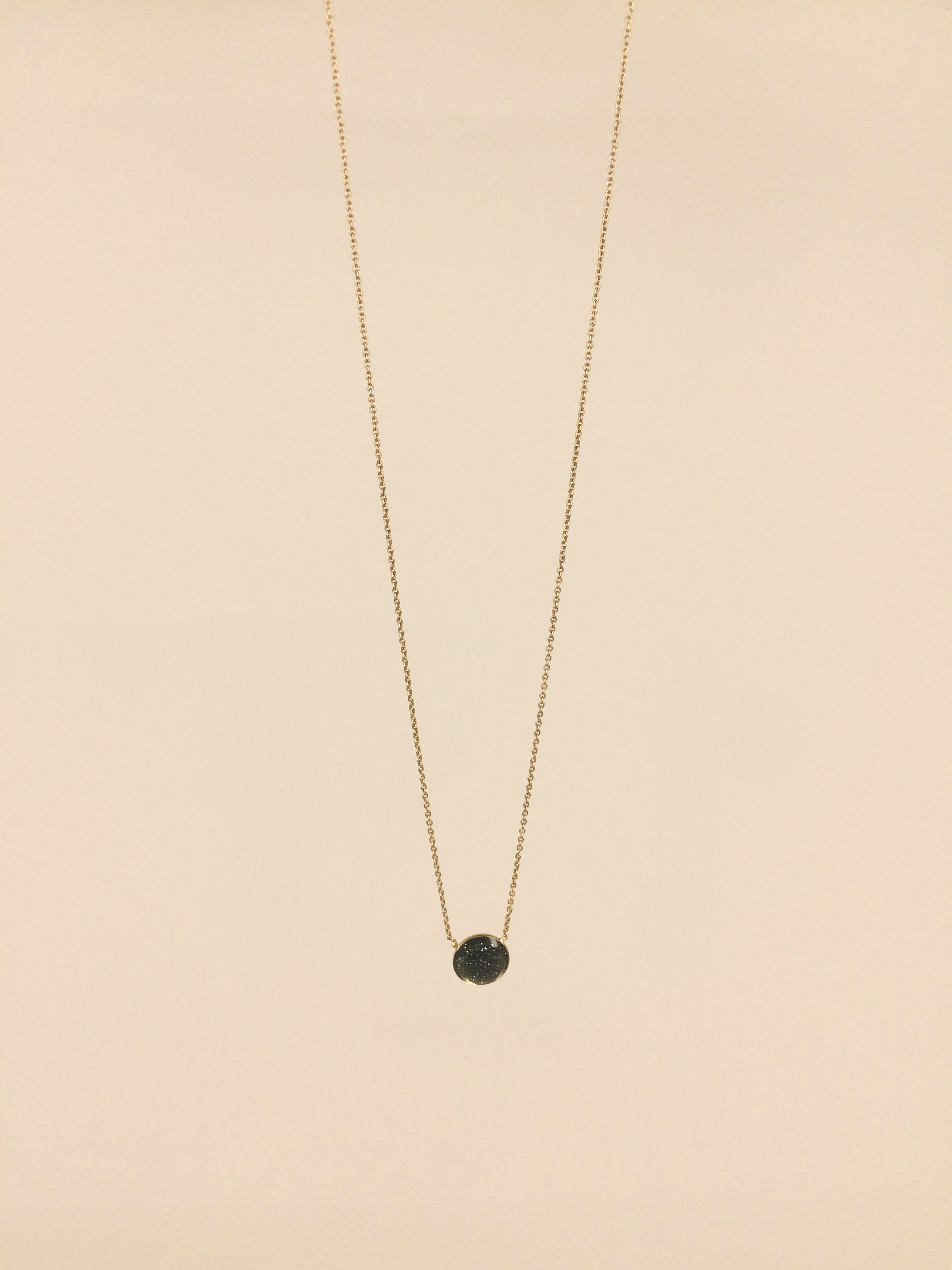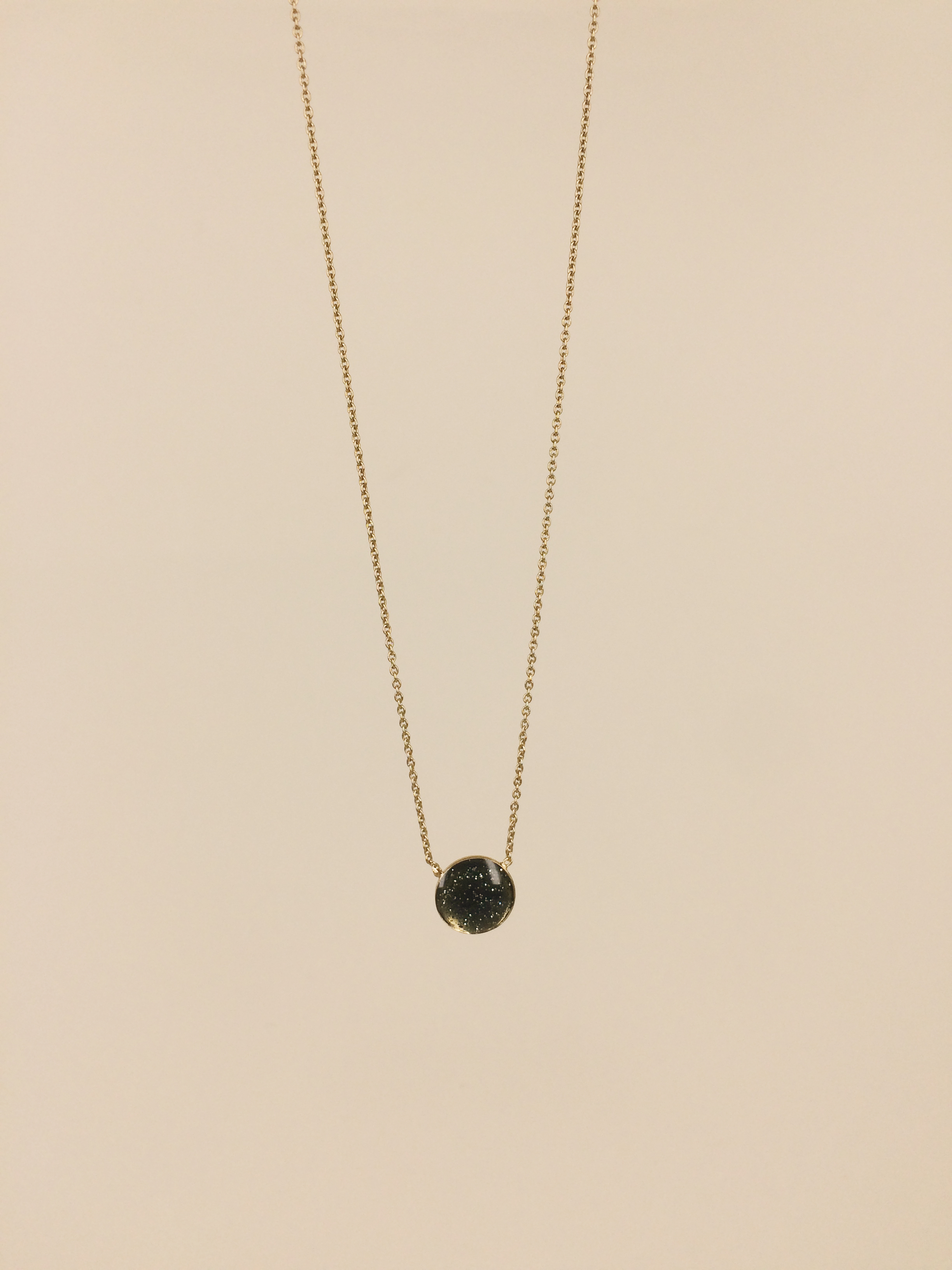 Die Kette Smarties von Virginie Monroe besteht aus vergoldete Messing und hat ein emaillierte Blatt.