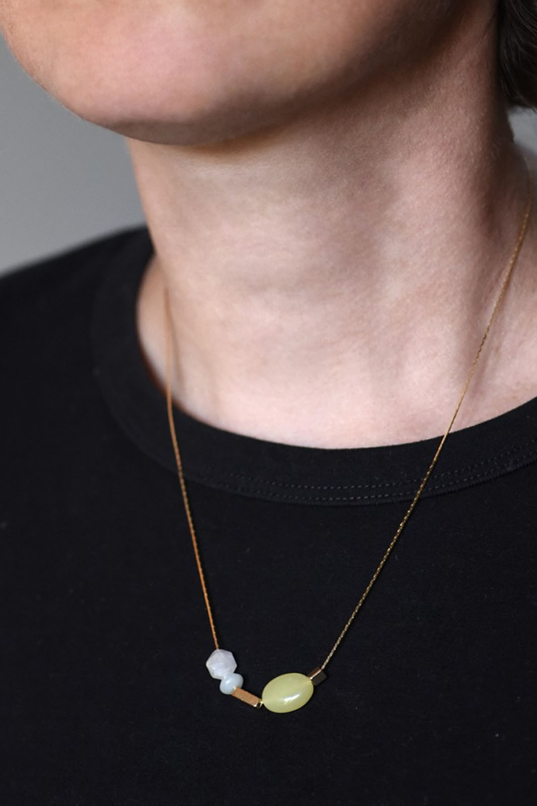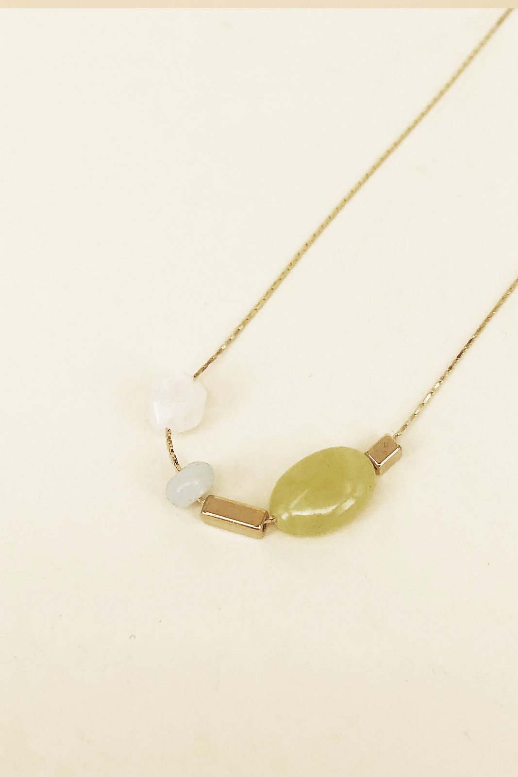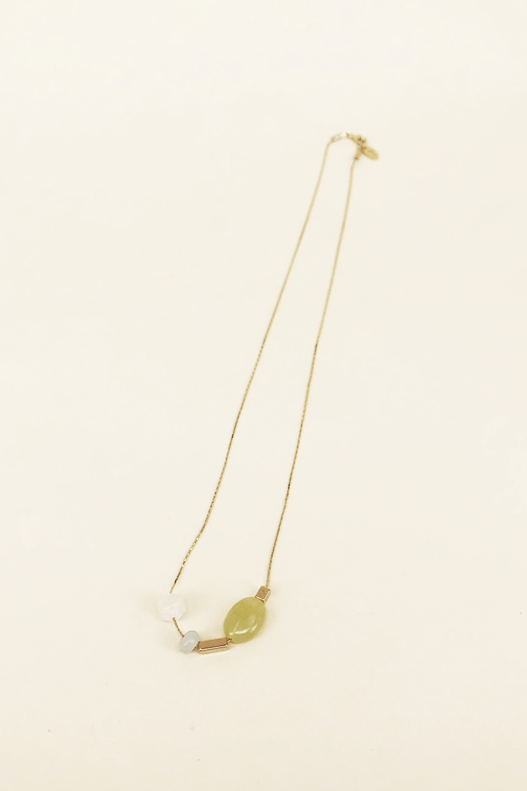 Die Kette Westbury in der Farbe Lime von Titlee besteht aus vergoldetem Messing und Halbedelsteinperle.