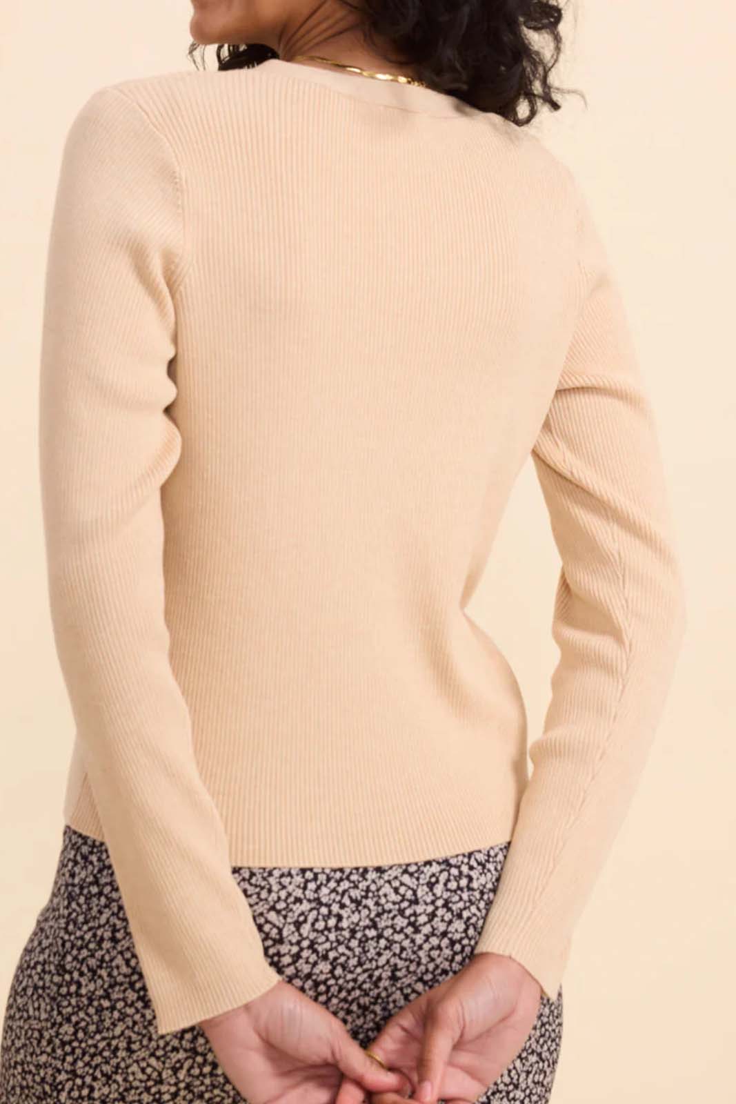 Der Pulli Archimede in der Farbe Beige von Marie Sixtine besteht aus 70% Viscoke und 30% Wolle.