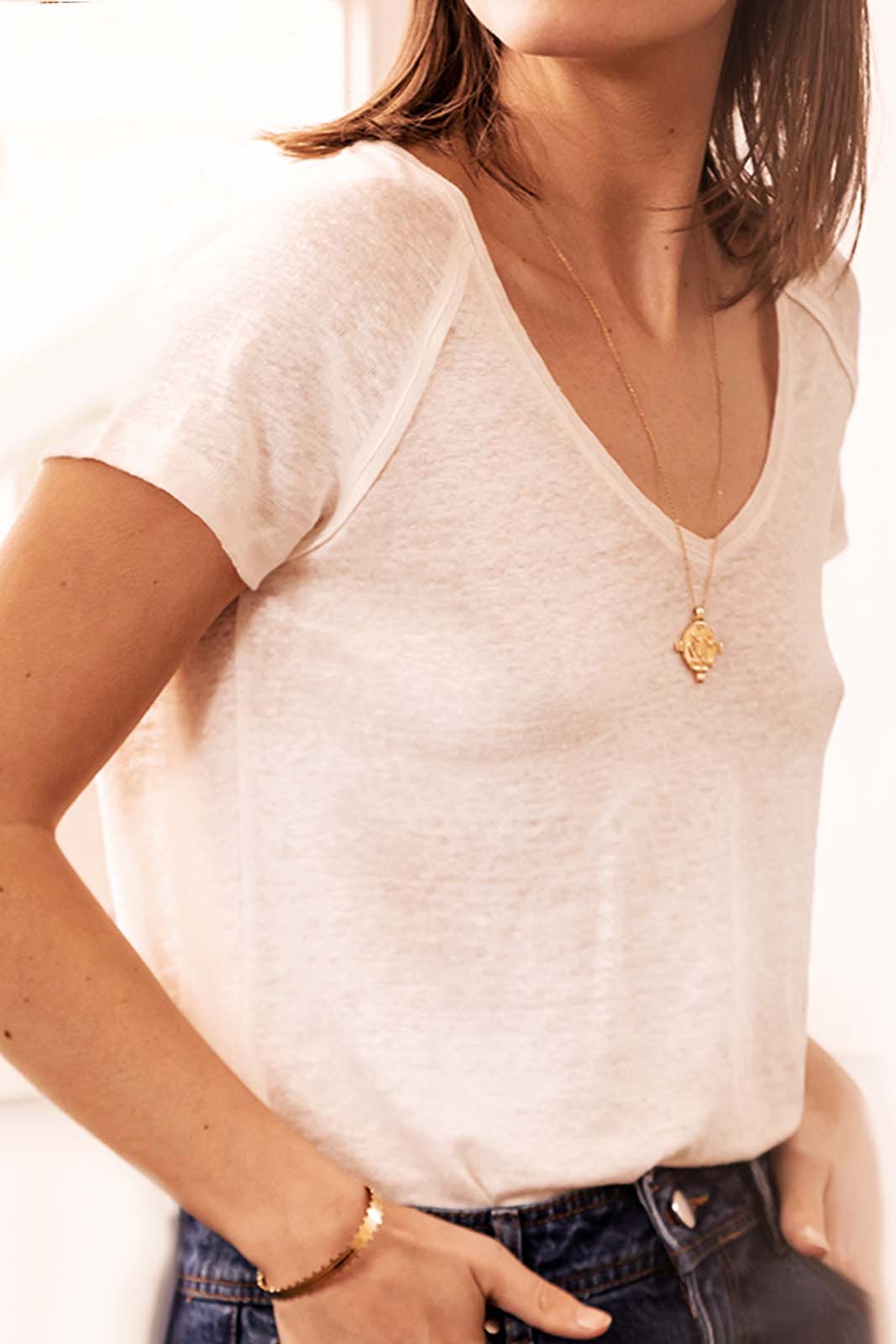 Das T-Shirt Caro in der Farbe Jasmine von Marie Sixtine besteht aus 100% Leinen.