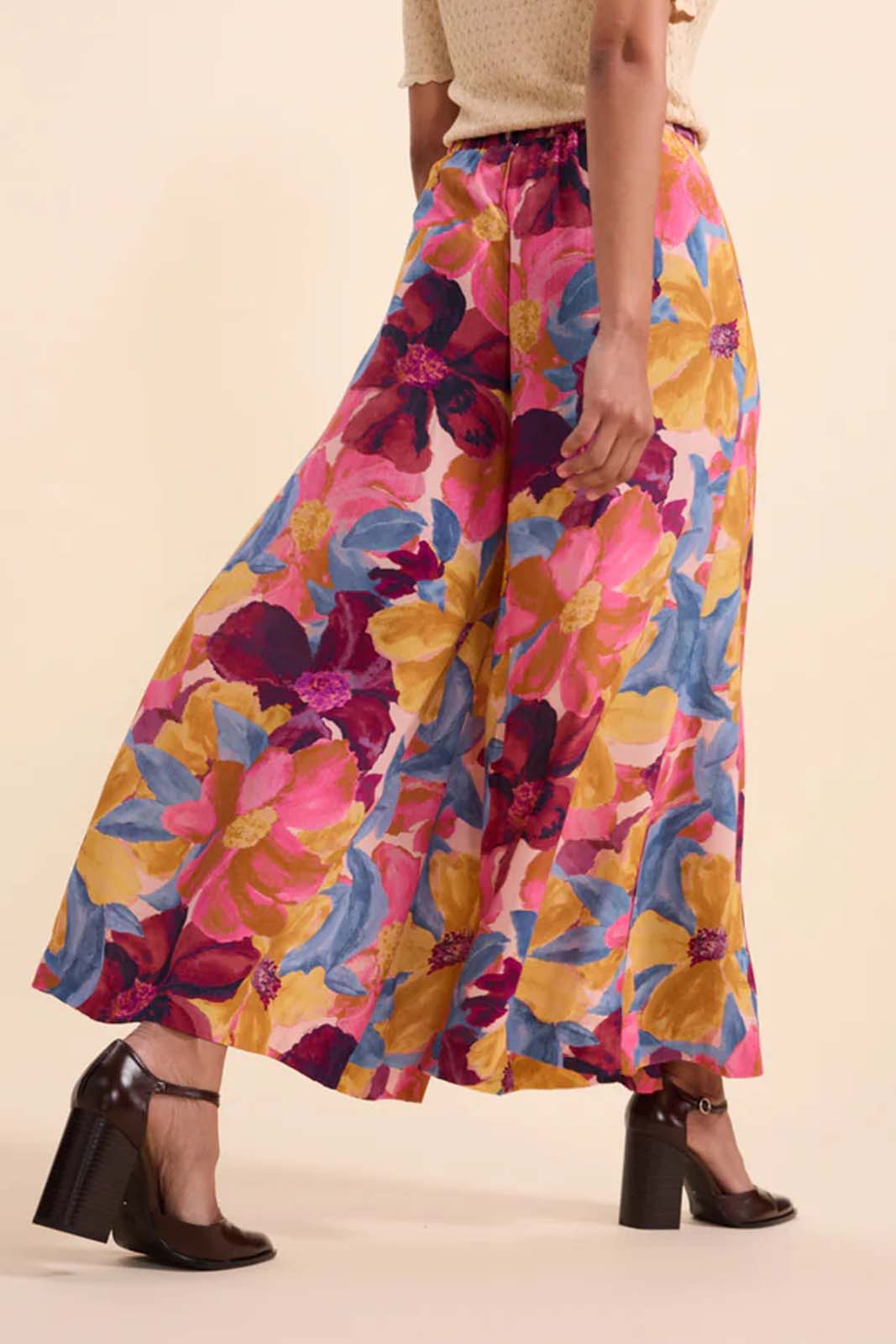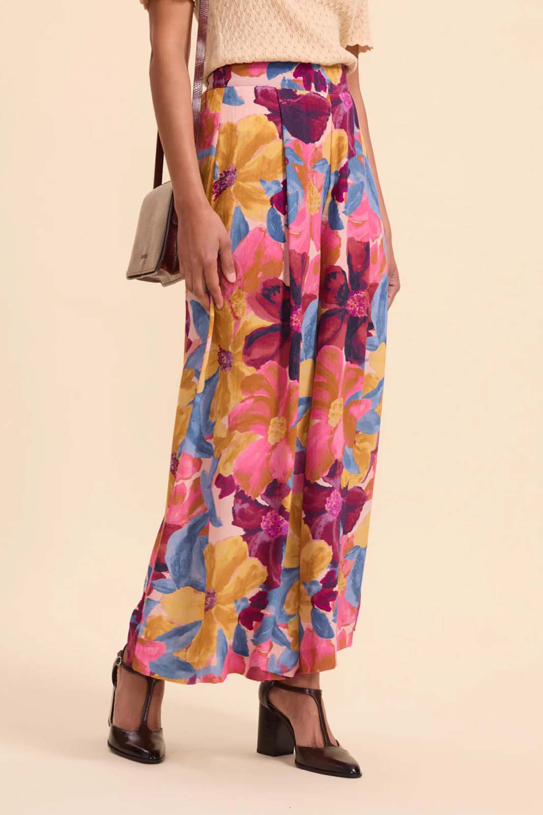 Die weite Hose Fred in der Farbe Fiore von Marie Sixtine besteht aus 100% Chiffon Viscose Faconnee.