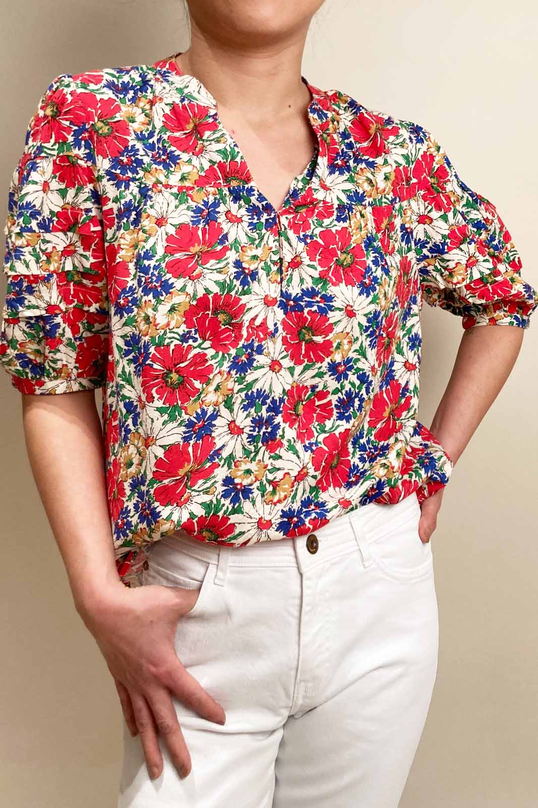 Die Bluse Monica in der Farbe Minorque Carmin von Petite Mendigote besteht aus 100% Viscose.
