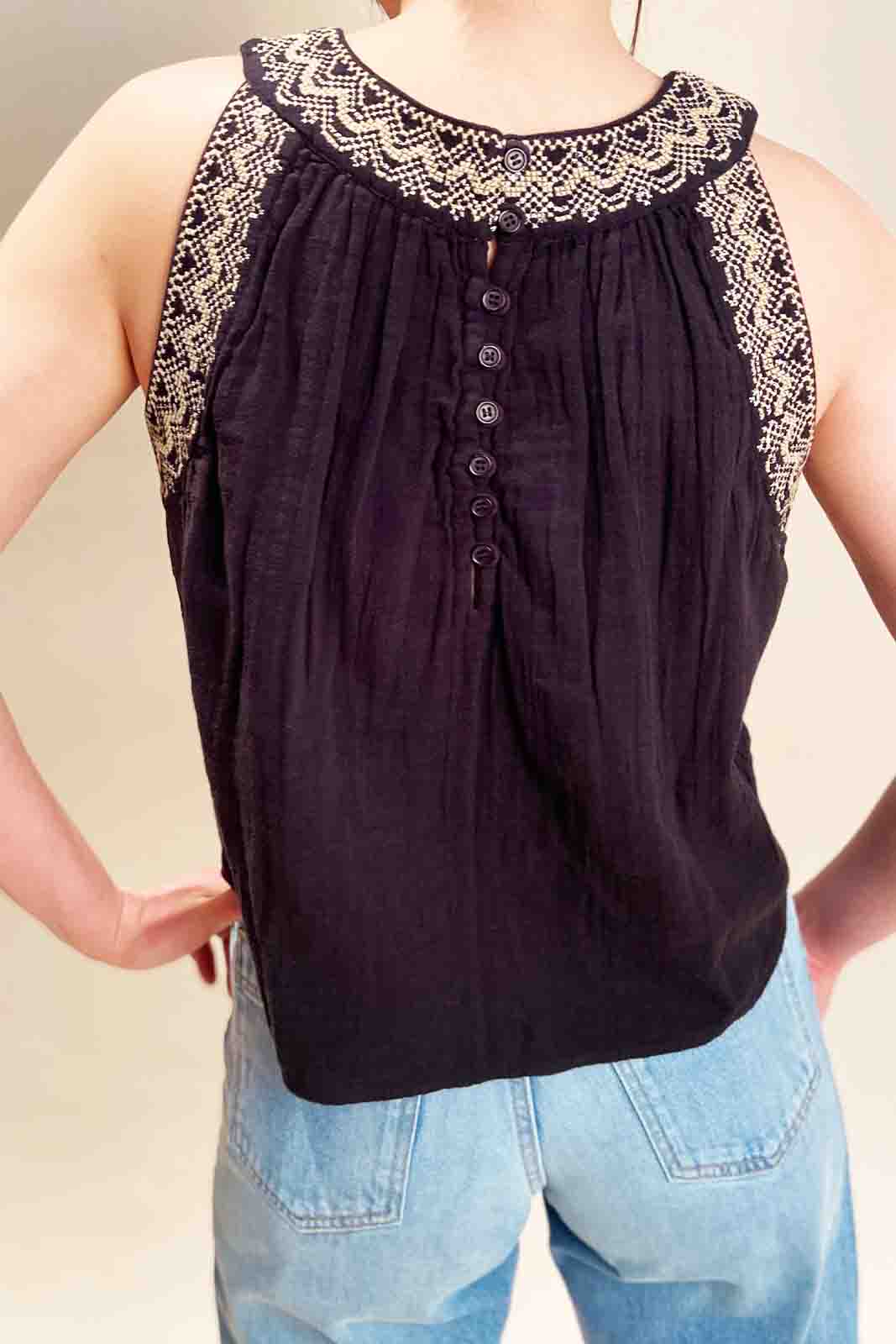 Das Top Tadeo in der Farbe Gauze Noir von Petite Mendigote besteht aus 100% Bio-Baumwolle.