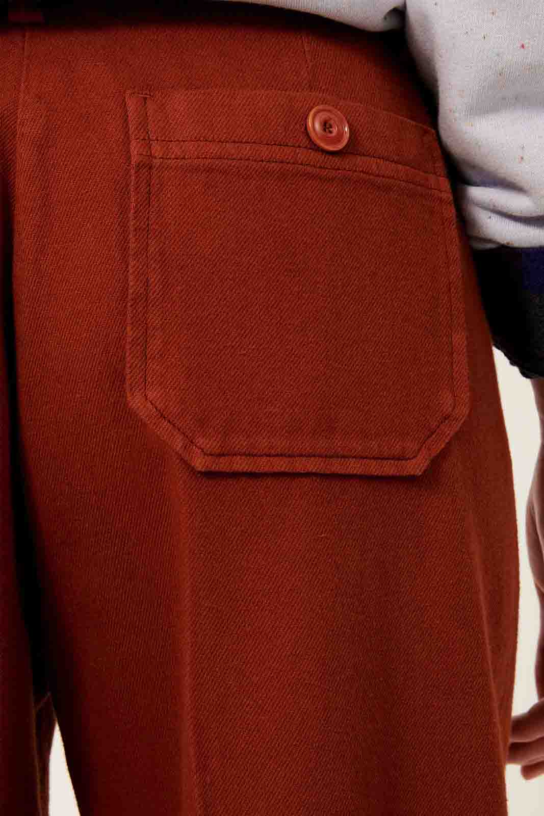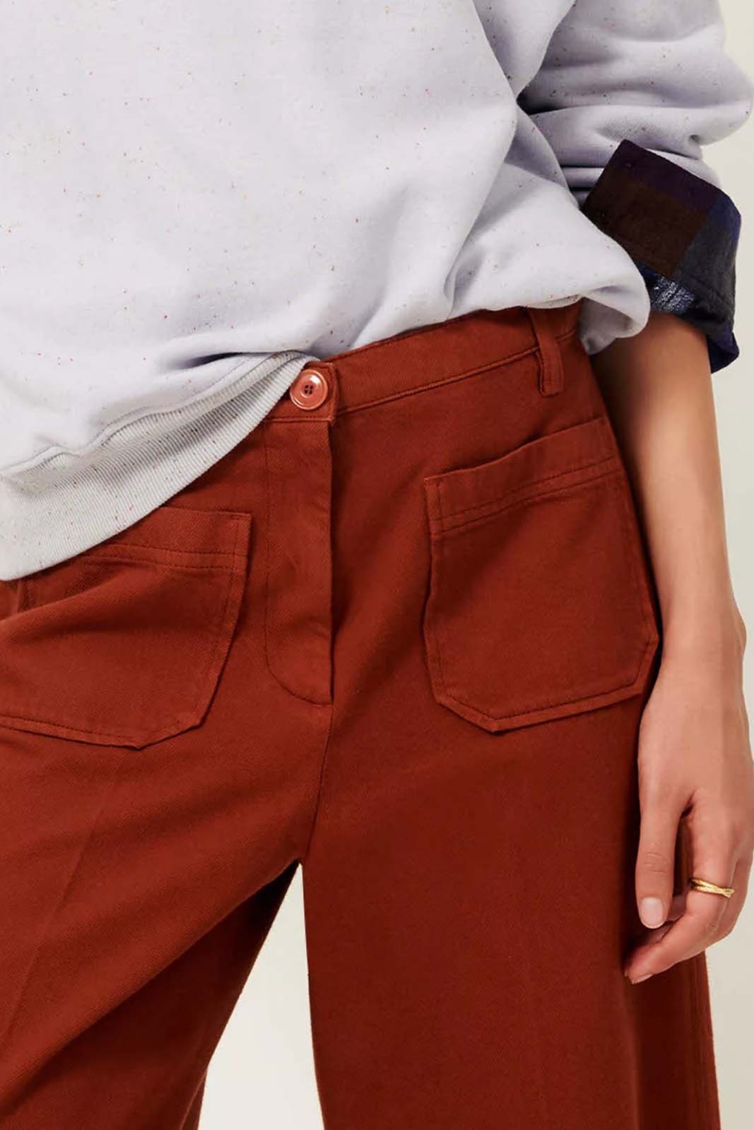 Die Hose Aldricks in der Farbe Tomette von Sessun besteht aus 100% GOTS-zertifizierte Bio-Baumwolle.