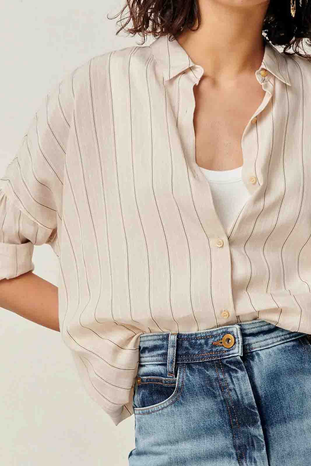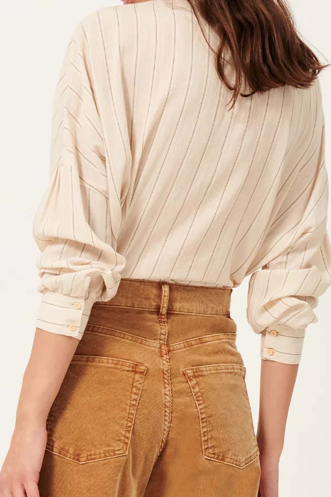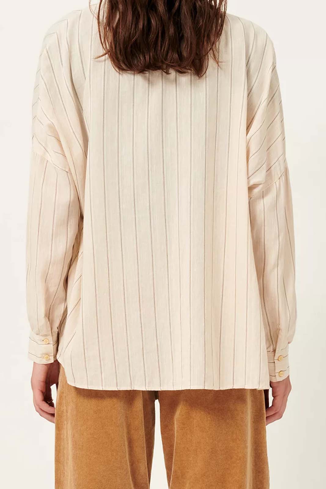 Die Bluse Botan in der Farbe Sandblack von Sessun besteht aus 34% Baumwolle und 51% Viscose und 15% Leinen.