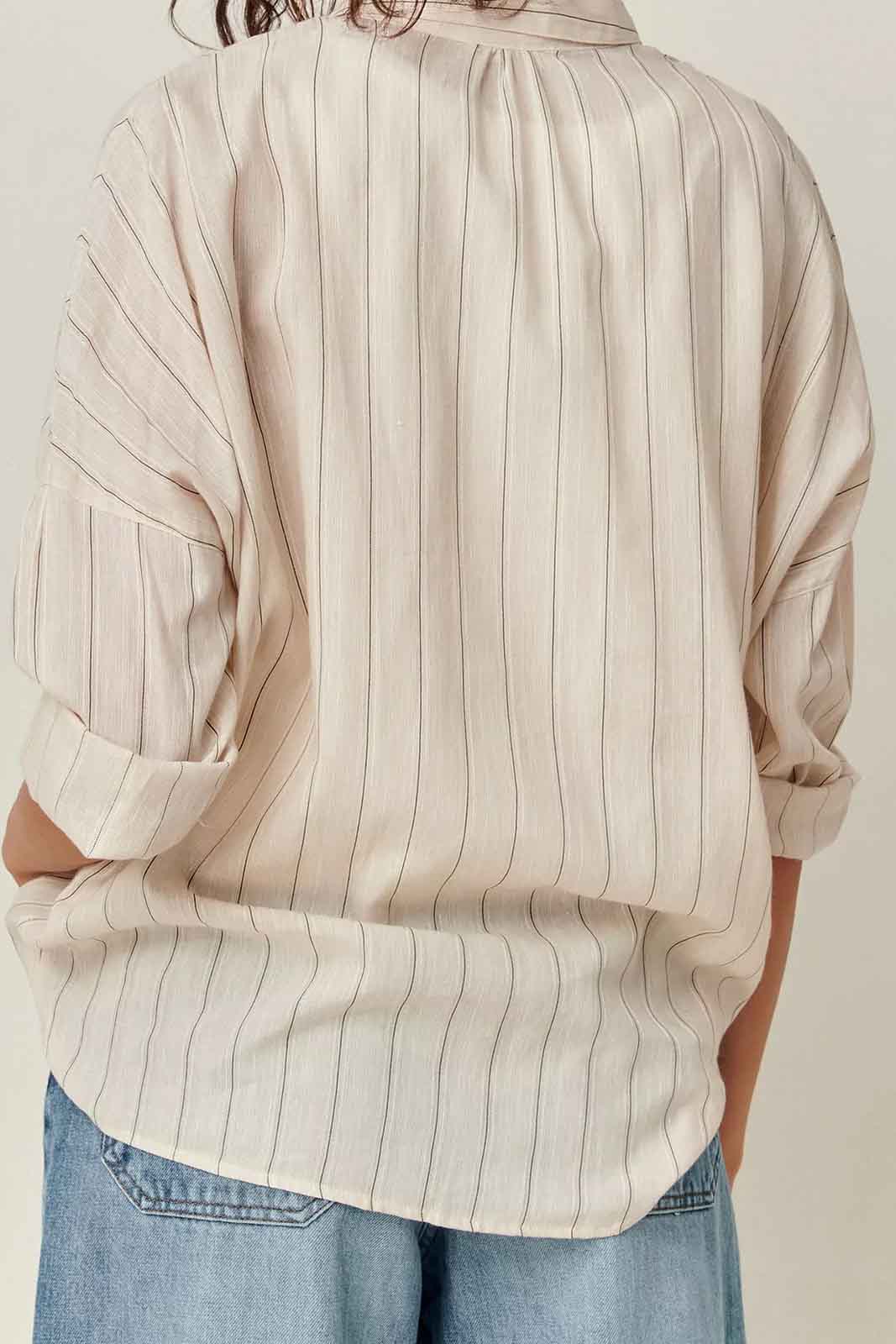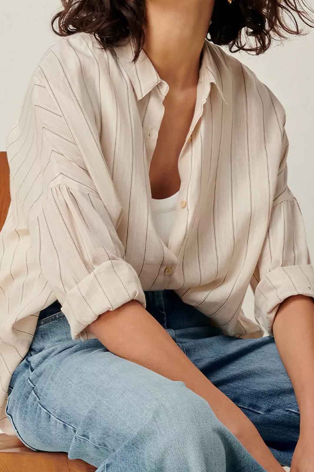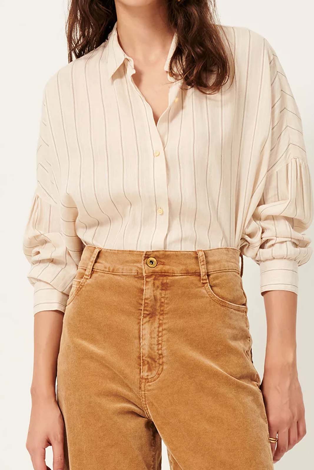Die Bluse Botan in der Farbe Sandblack von Sessun besteht aus 34% Baumwolle und 51% Viscose und 15% Leinen.