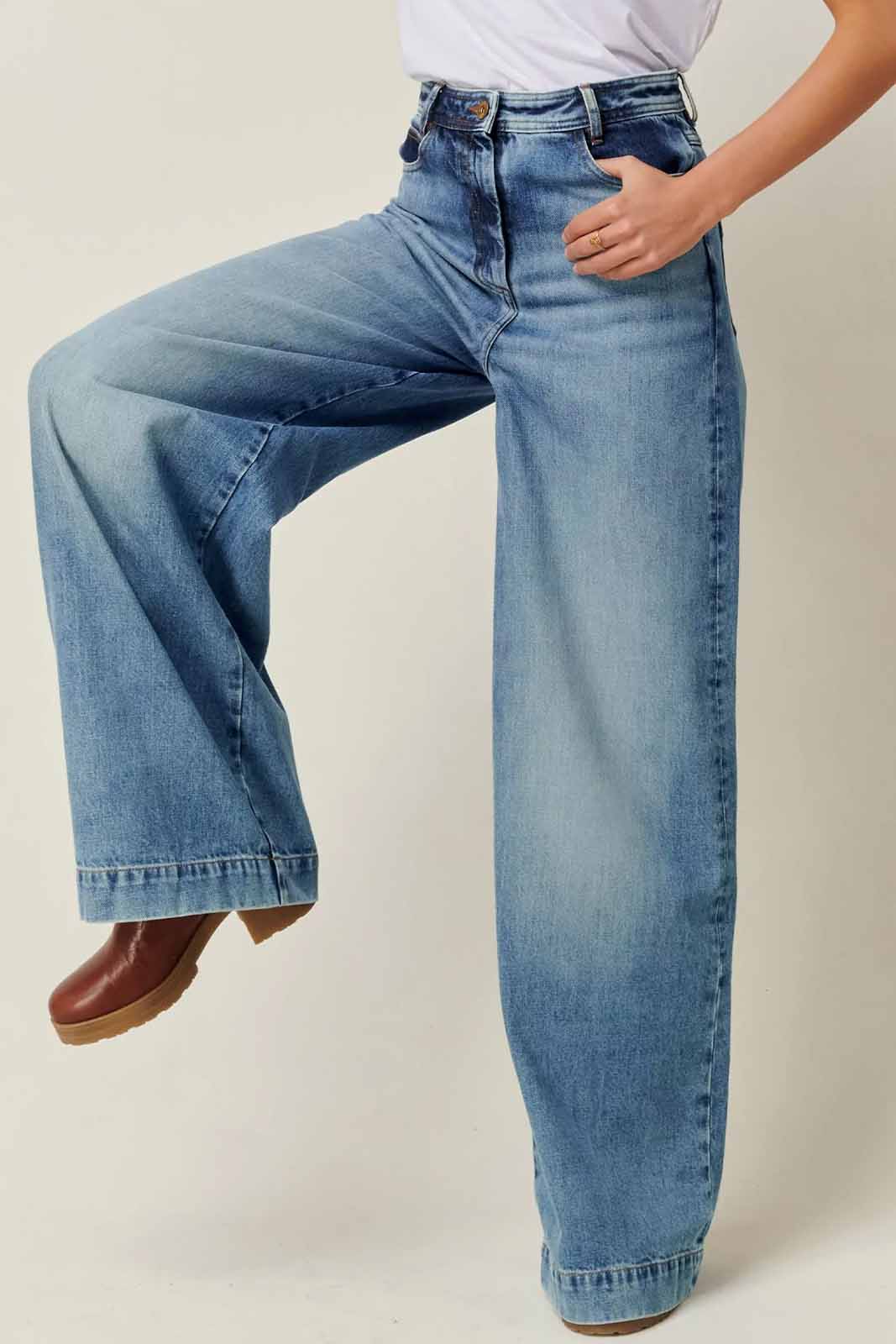 Die Jeans Captain Denim in der Farbe Vintage Blue von Sessun besteht aus 100% Baumwolle.