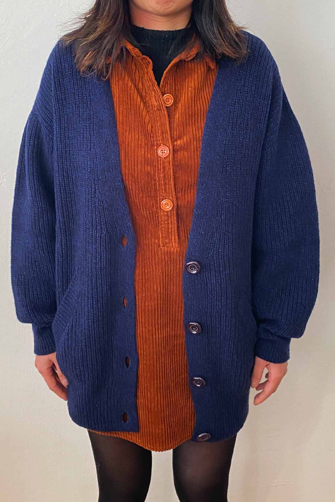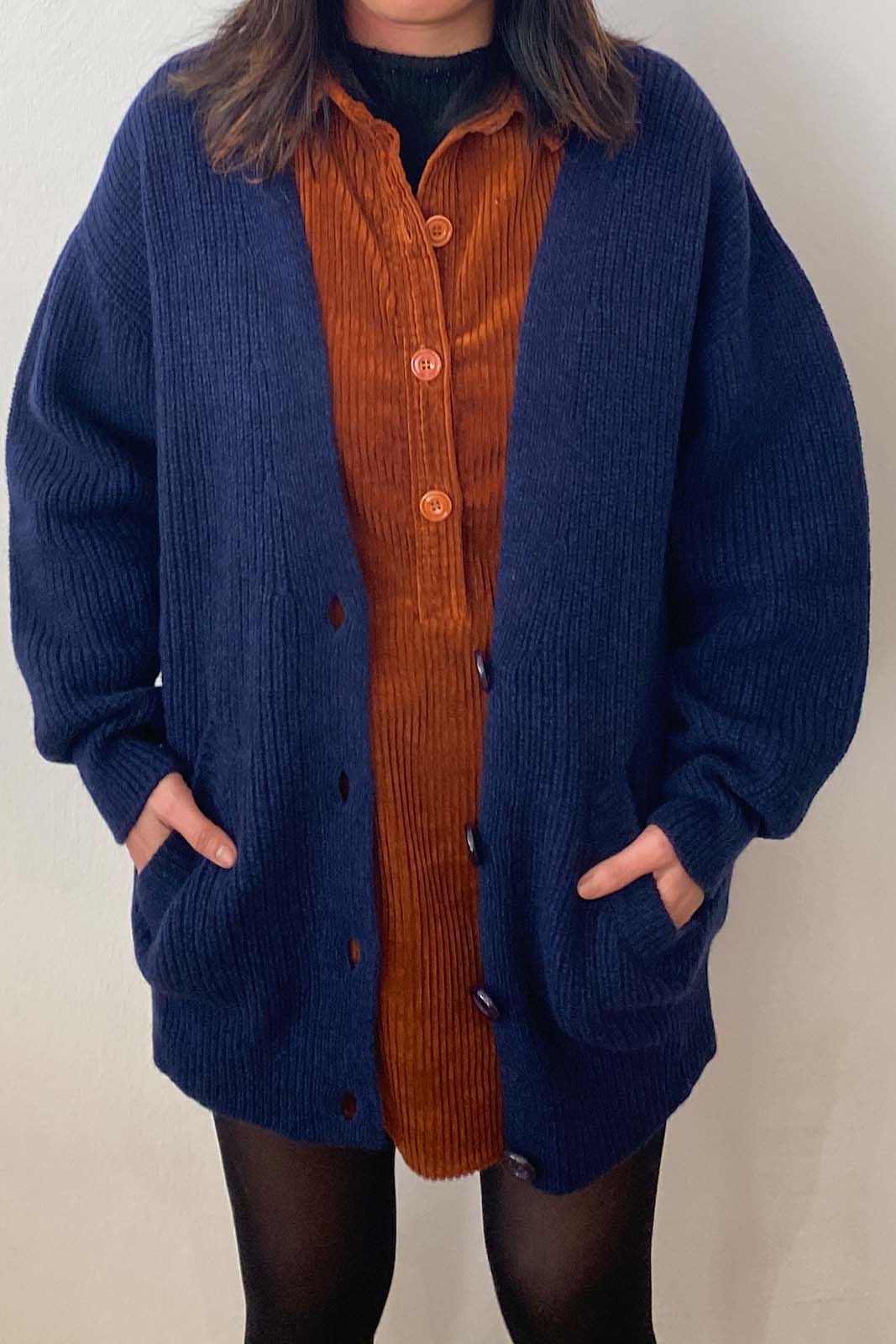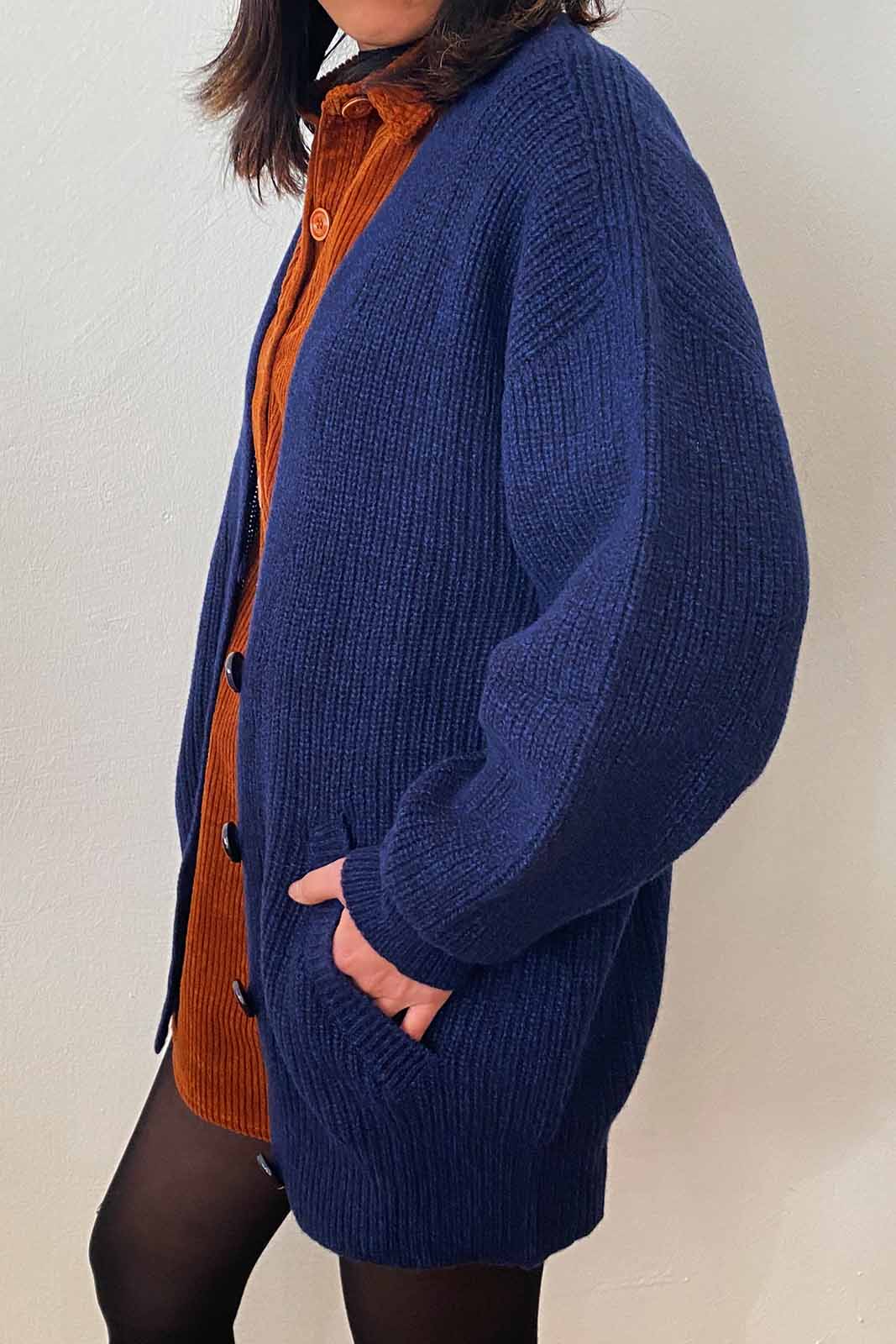 Der Cardigan Cardy in der Farbe Blublack von Sessun besteht aus 90% Merinowolle und 10% Kaschmir.