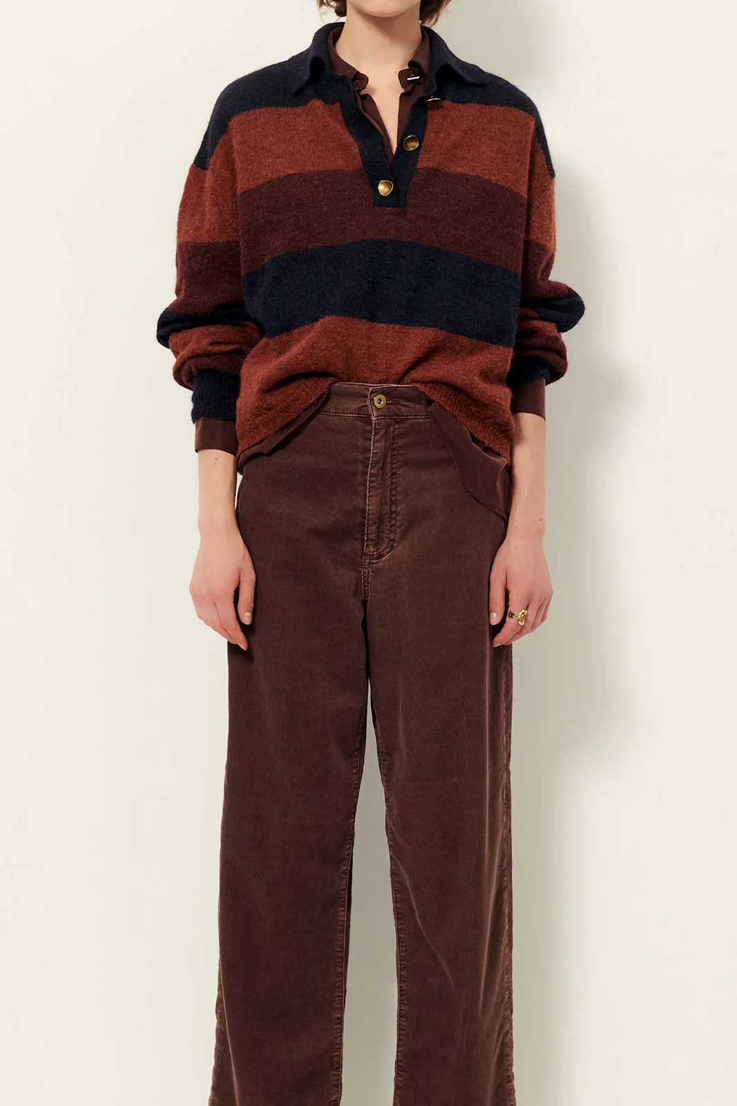 Der Pulli Cobby in der Farbe Navyrust von Sessun besteht aus 45% Alpaka, 32% Polyamid und 23% Mohair.