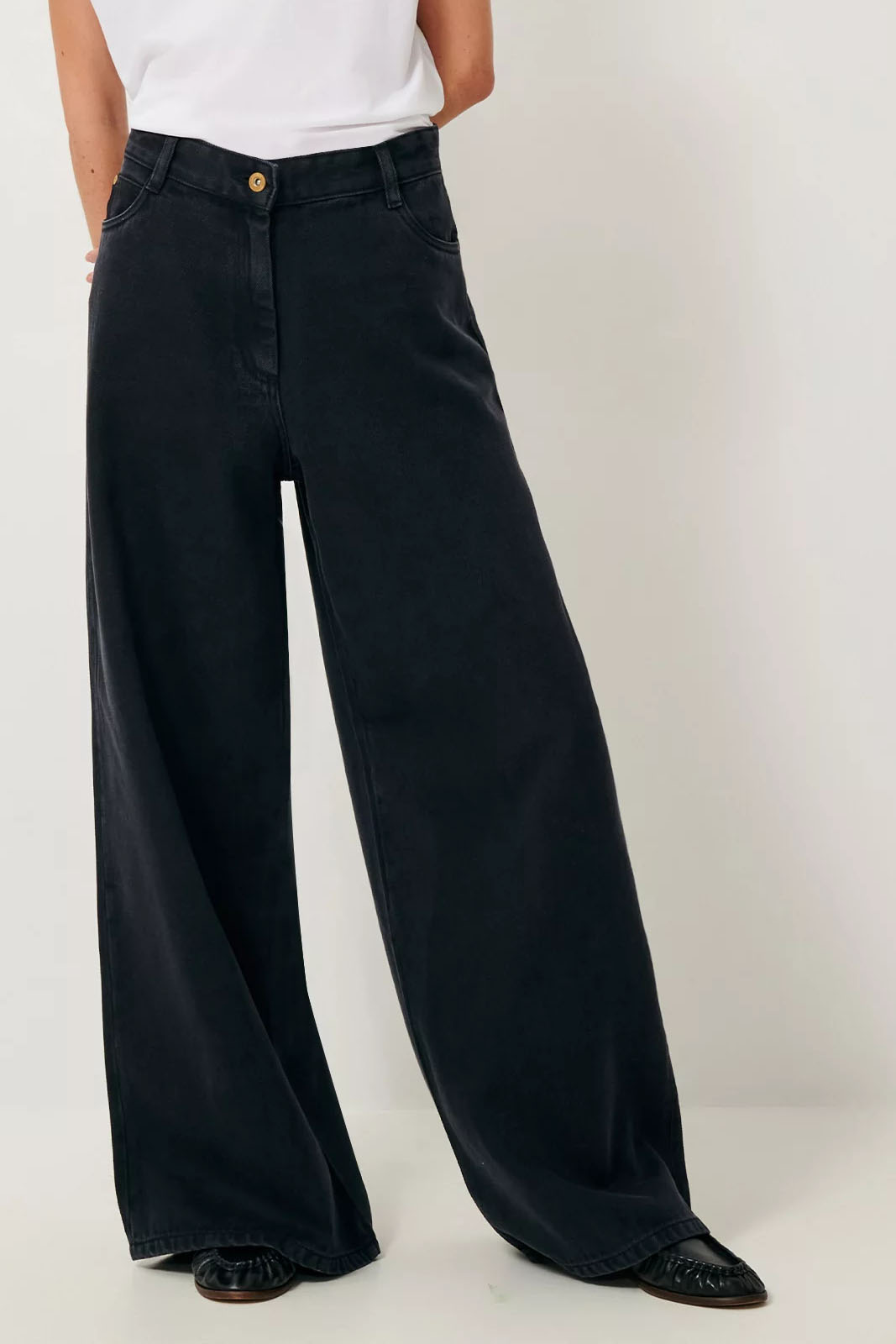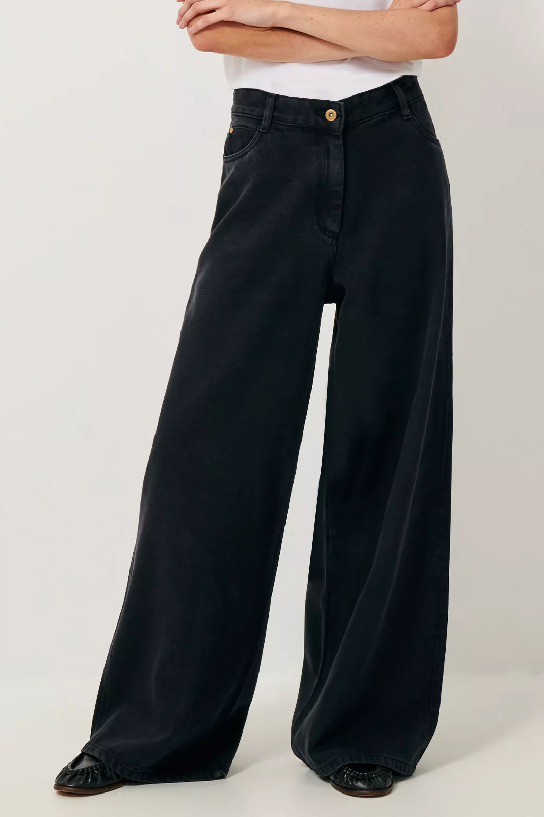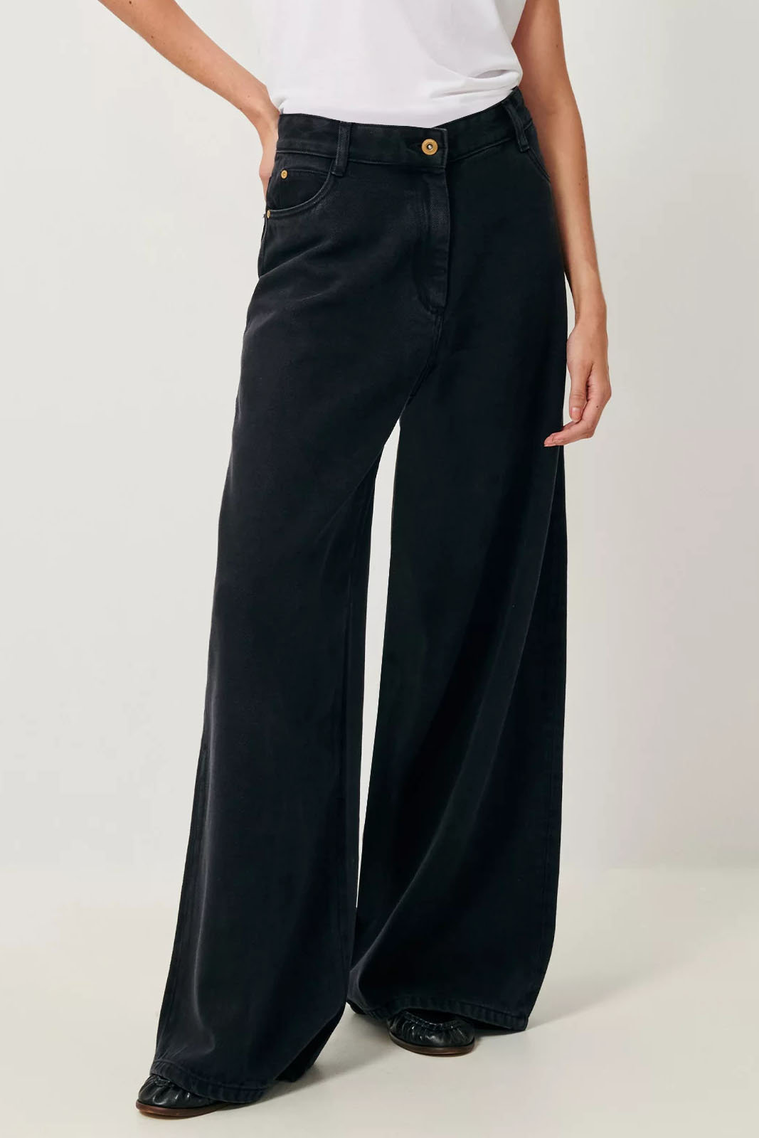 Die weit geschnittene Hose Dalt in der Farbe Black von Sessun besteht aus 100% Baumwolle.