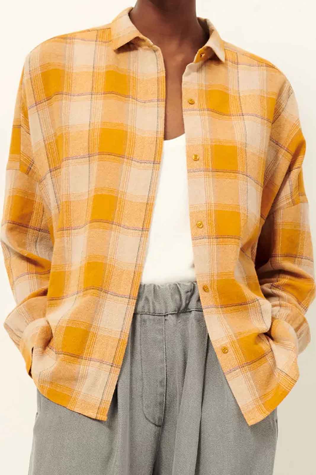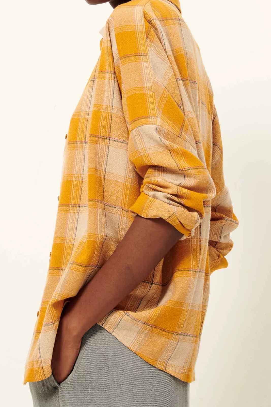 Die Bluse Deliwool in der Farbe Miami von Sessun besteht aus 40% Wolle, 30% Viscose und 30% recycelte Polyester.