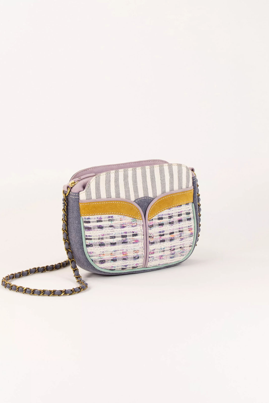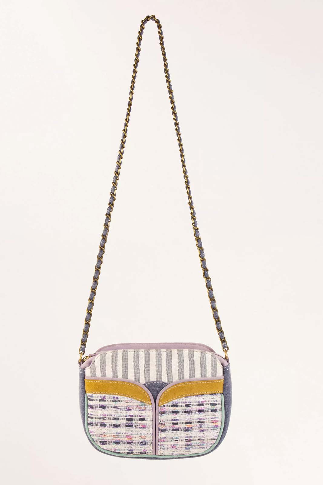 Die Tasche Divine in der Farbe Cowry Infused von Sessun besteht aus 90% Textil und 10% LWG-zertifiziertes Spaltleder.