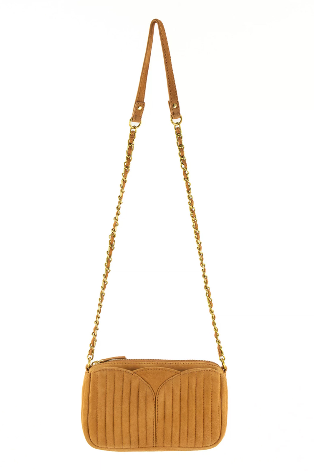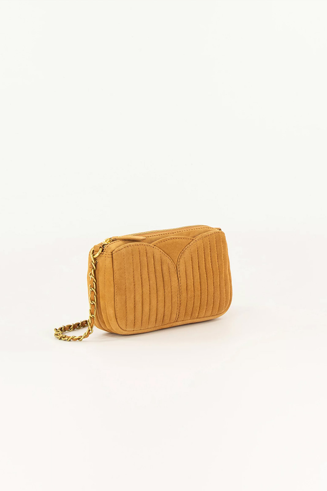 Die Tasche Divinou in der Farbe Honey Gold von Sessun besteht aus 100% Ziegenleder.