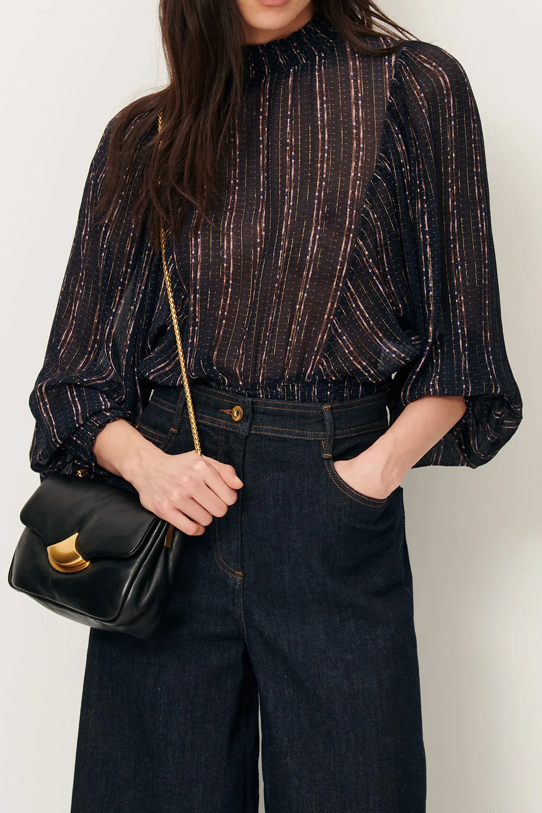 Die Bluse Duchess in der Farbe Plumilux von Sessun besteht aus 82% Viskose, 16% Seide und 2% Lurex.