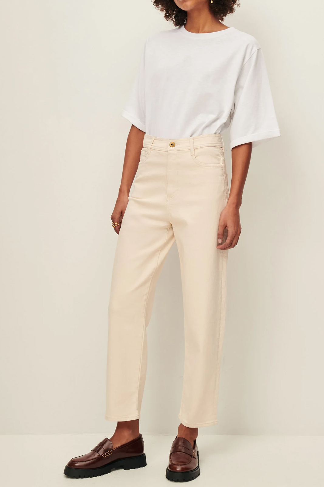 Die Jeans Peter in der Farbe Fleur de Sel von Sessun besteht aus 98% Baumwolle und 2% Elastan.