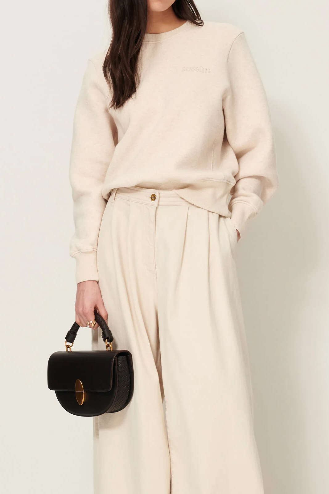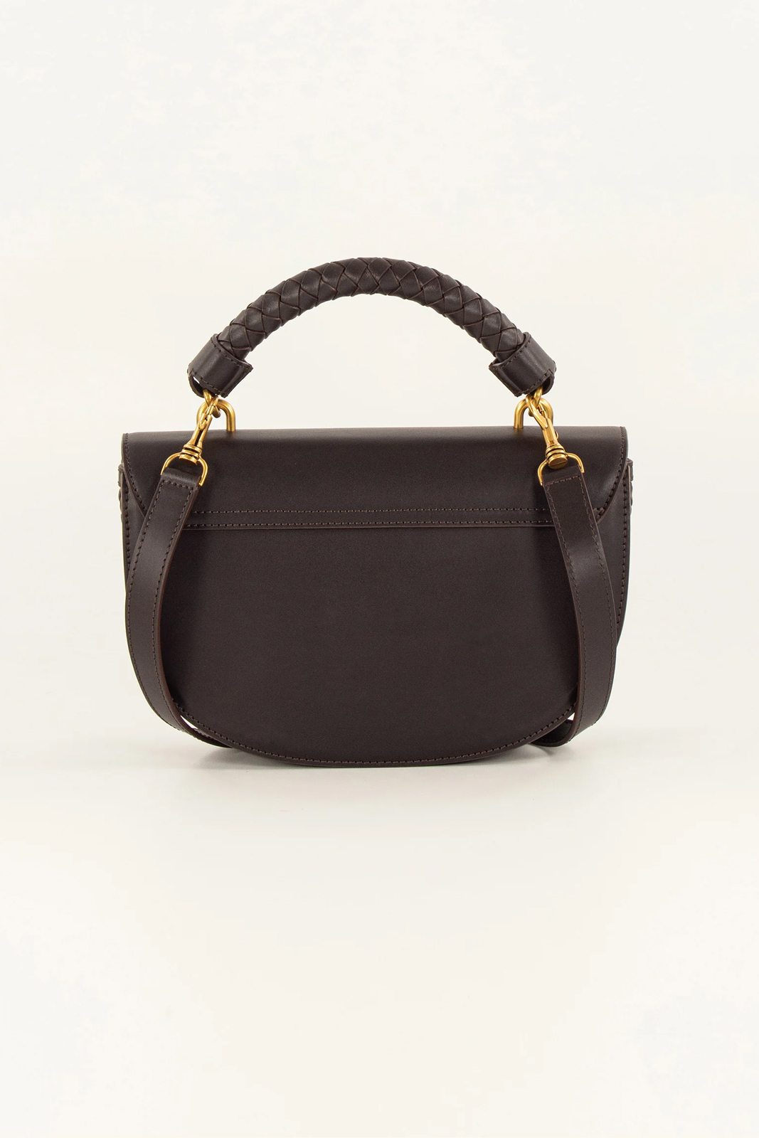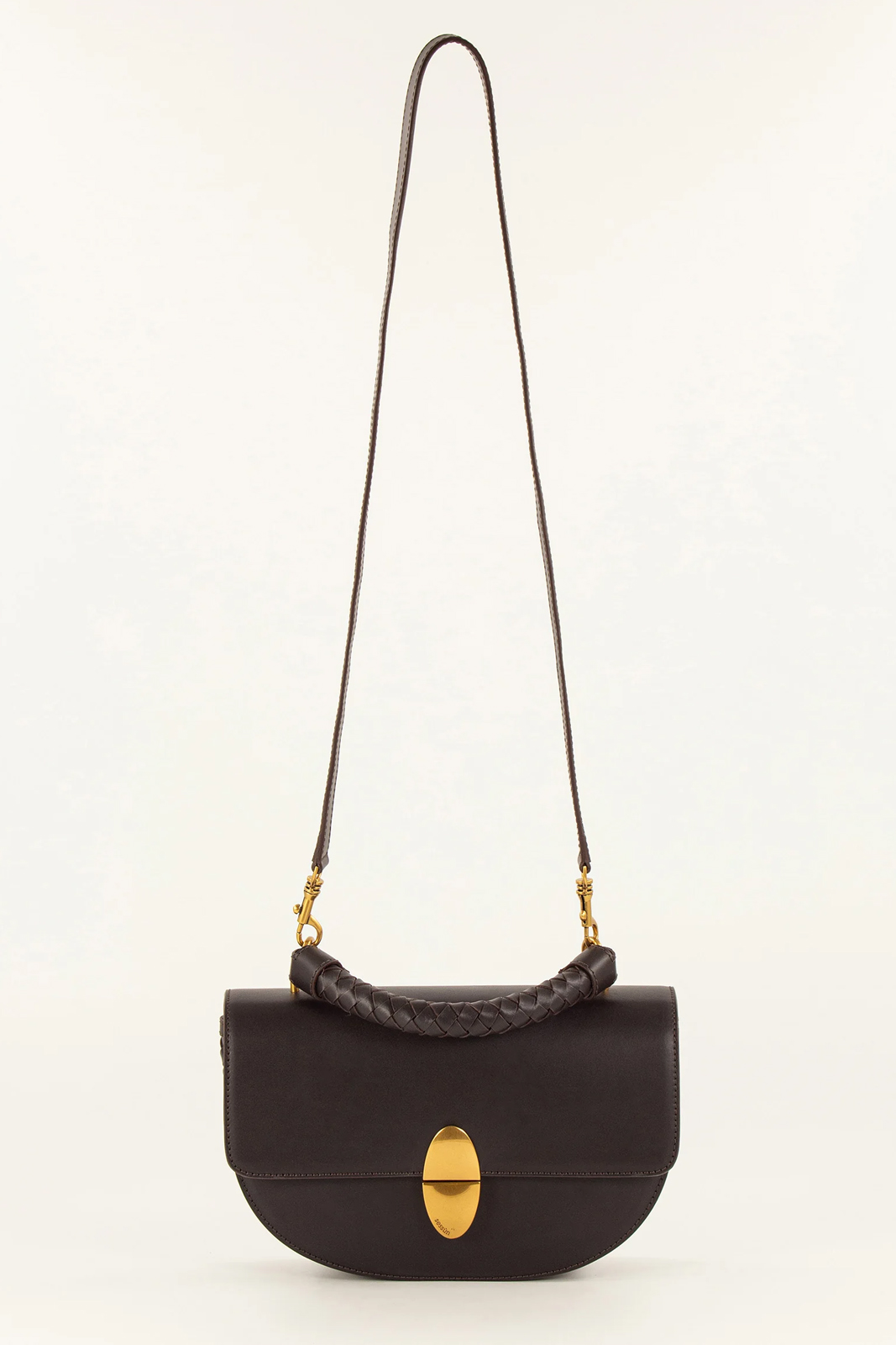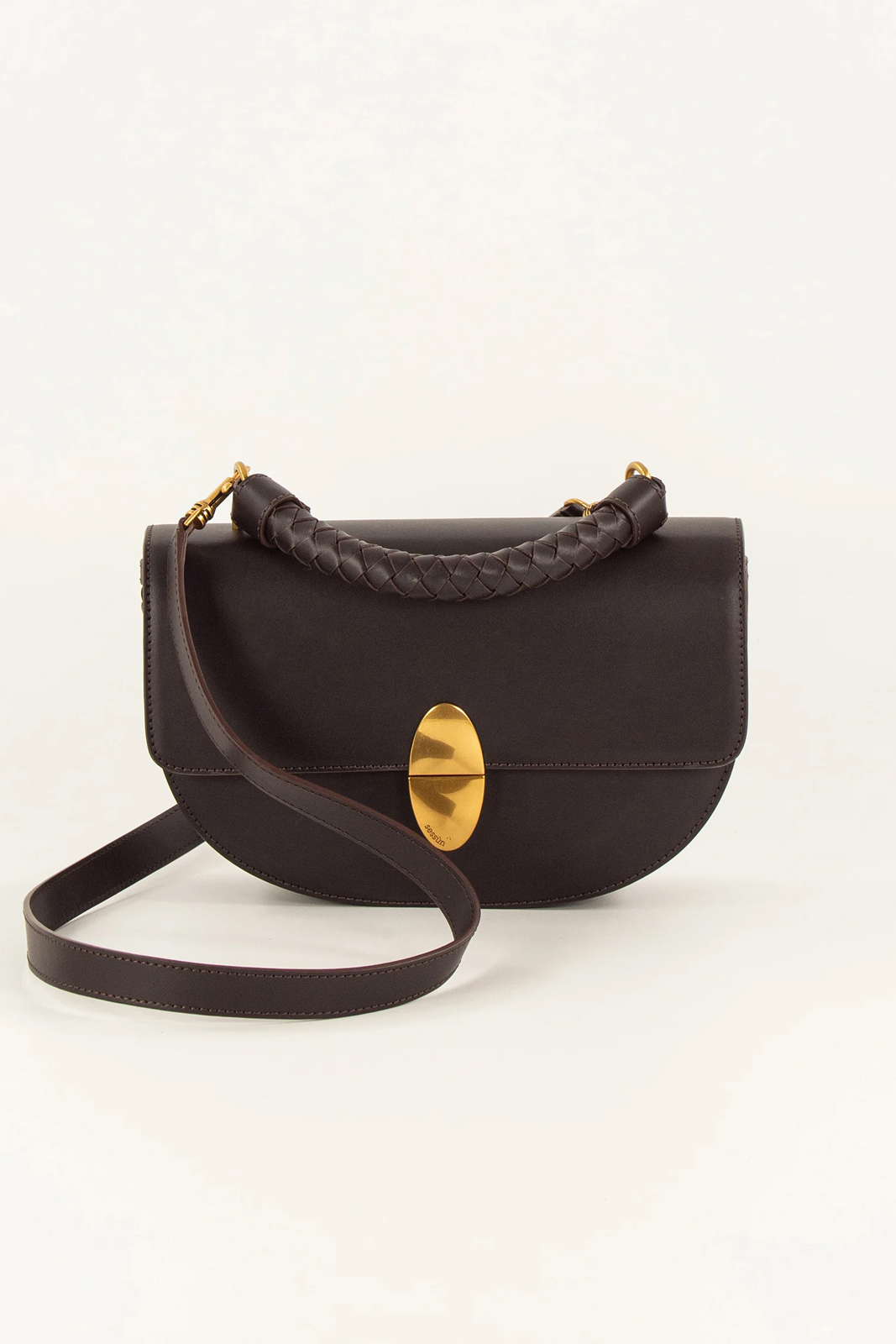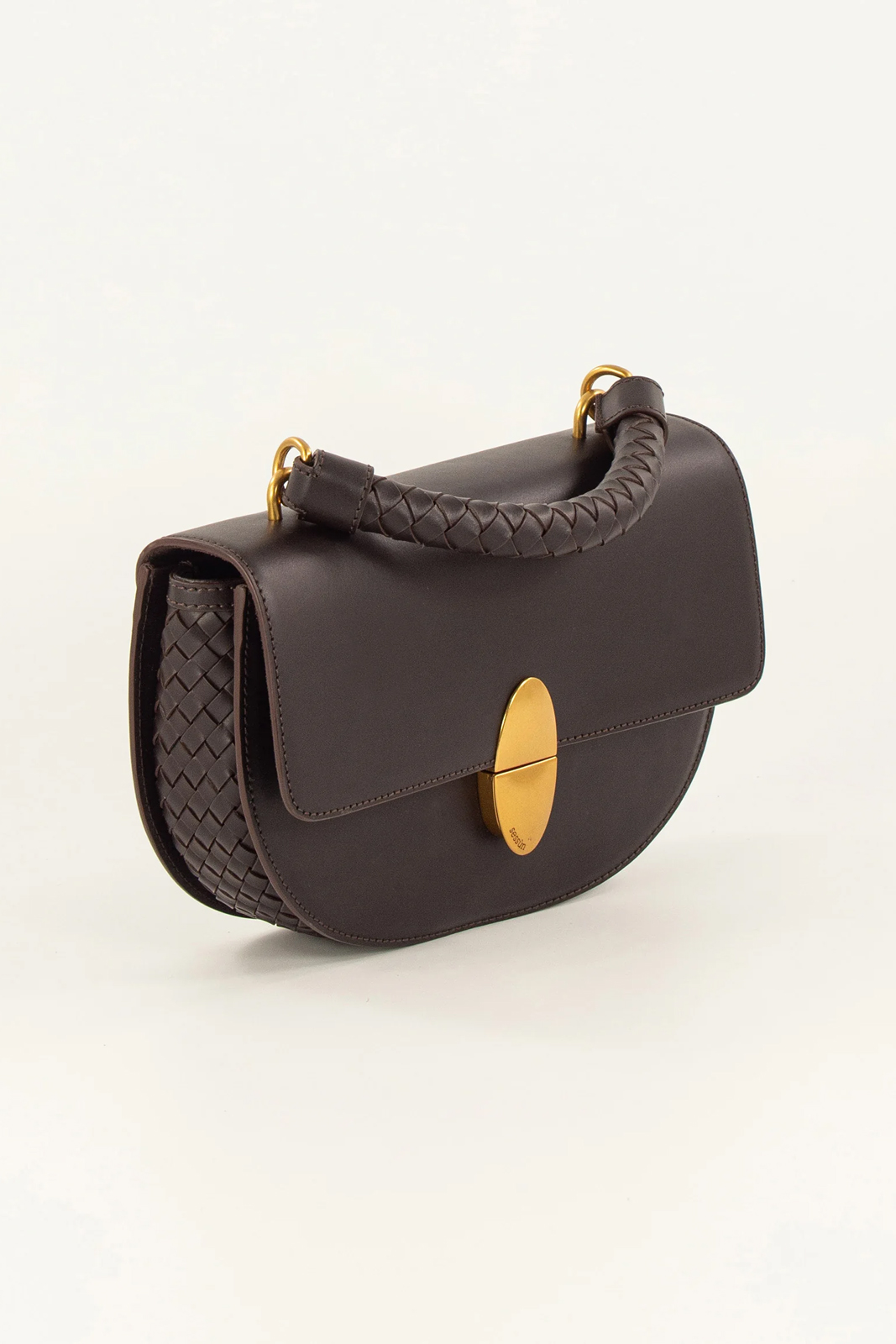 Die Tasche Round Tesoro in der Farbe Deep Coffea von Sessun besteht aus 100% Rindsleder.