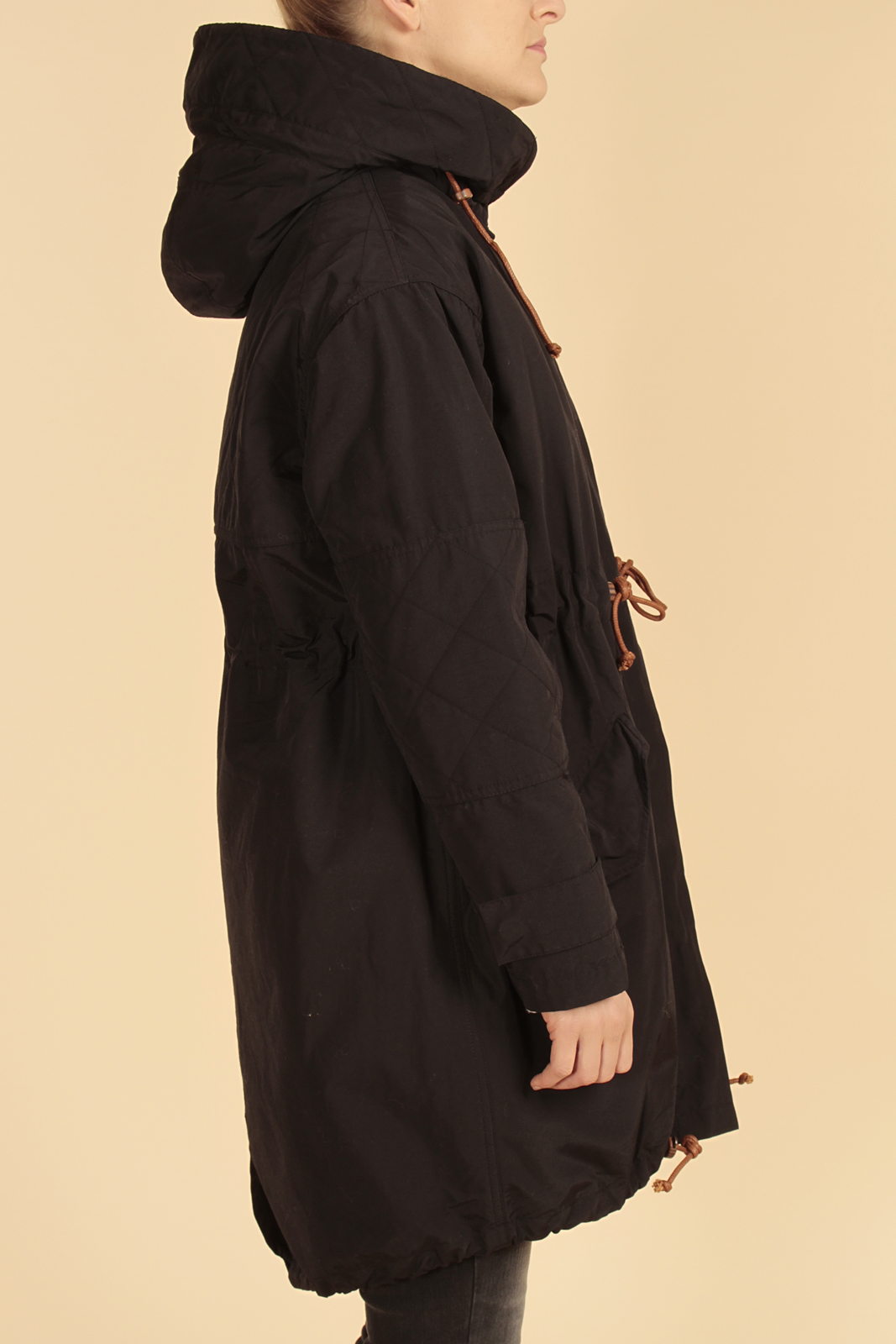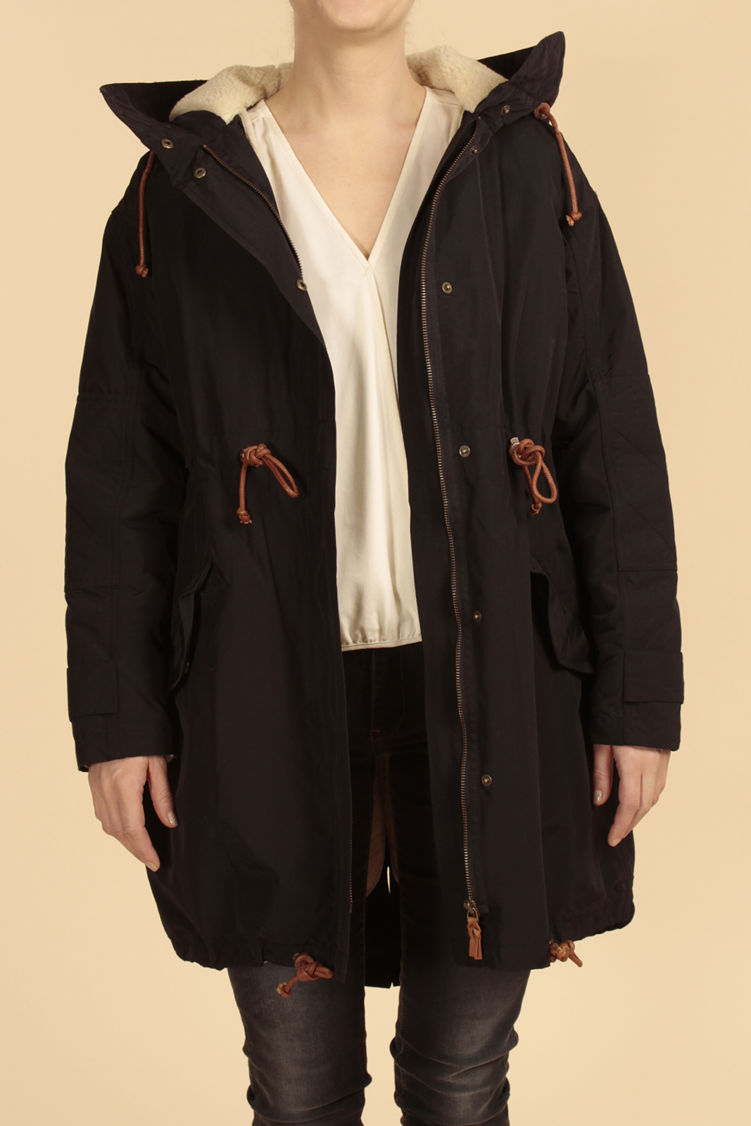 Der Mantel Skyboy in der farbe Black von Sessun besteht aus 70% Wolle und 30% Polyamide.