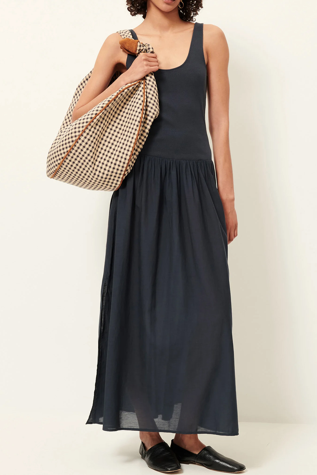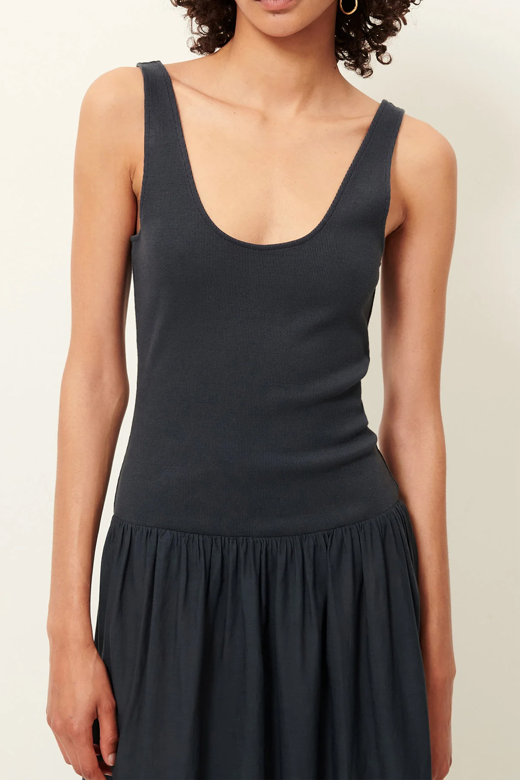 Das Kleid Solao in der Farbe Smoke Green von Sessun besteht aus 55% Baumwolle und 45% Viskose.