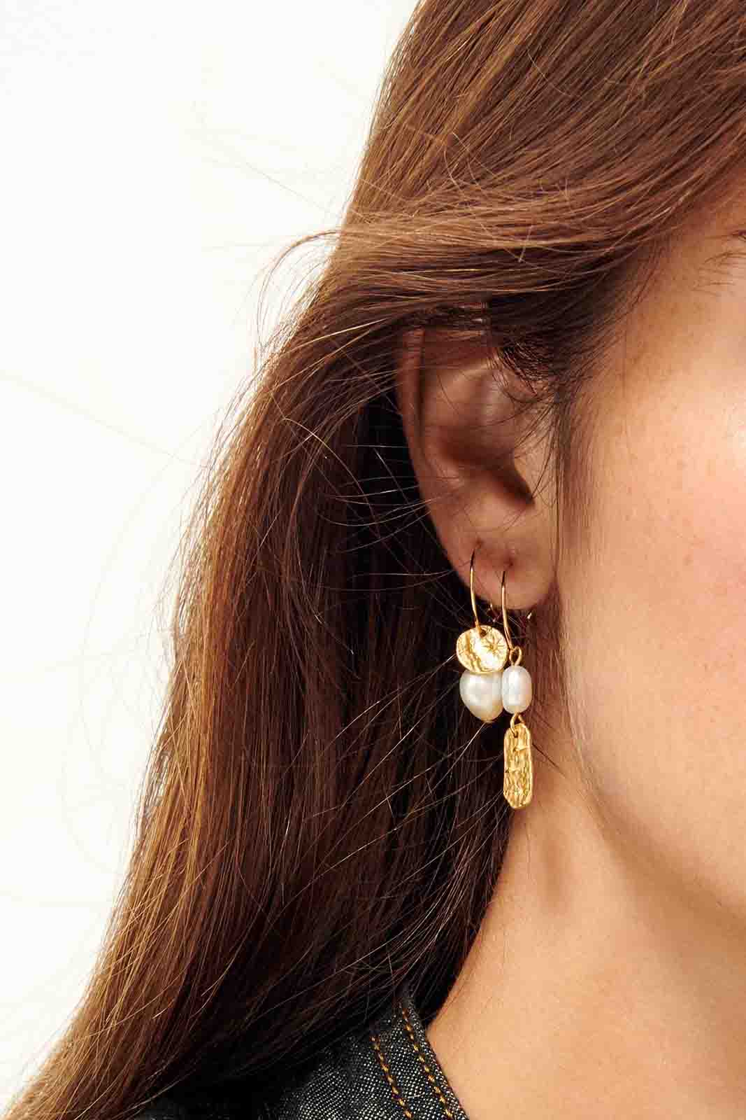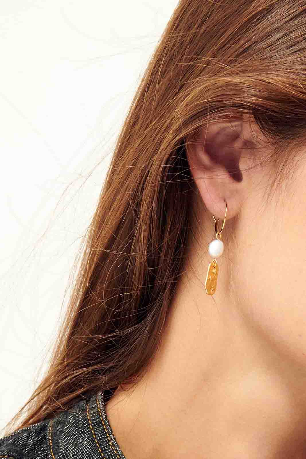 Der Ohrring Soren Pearl von Sessun besteht aus vergoldete Messing und Süßwasserperle.