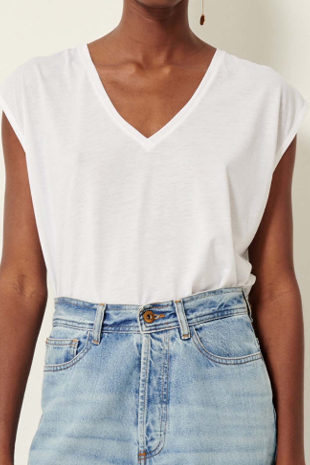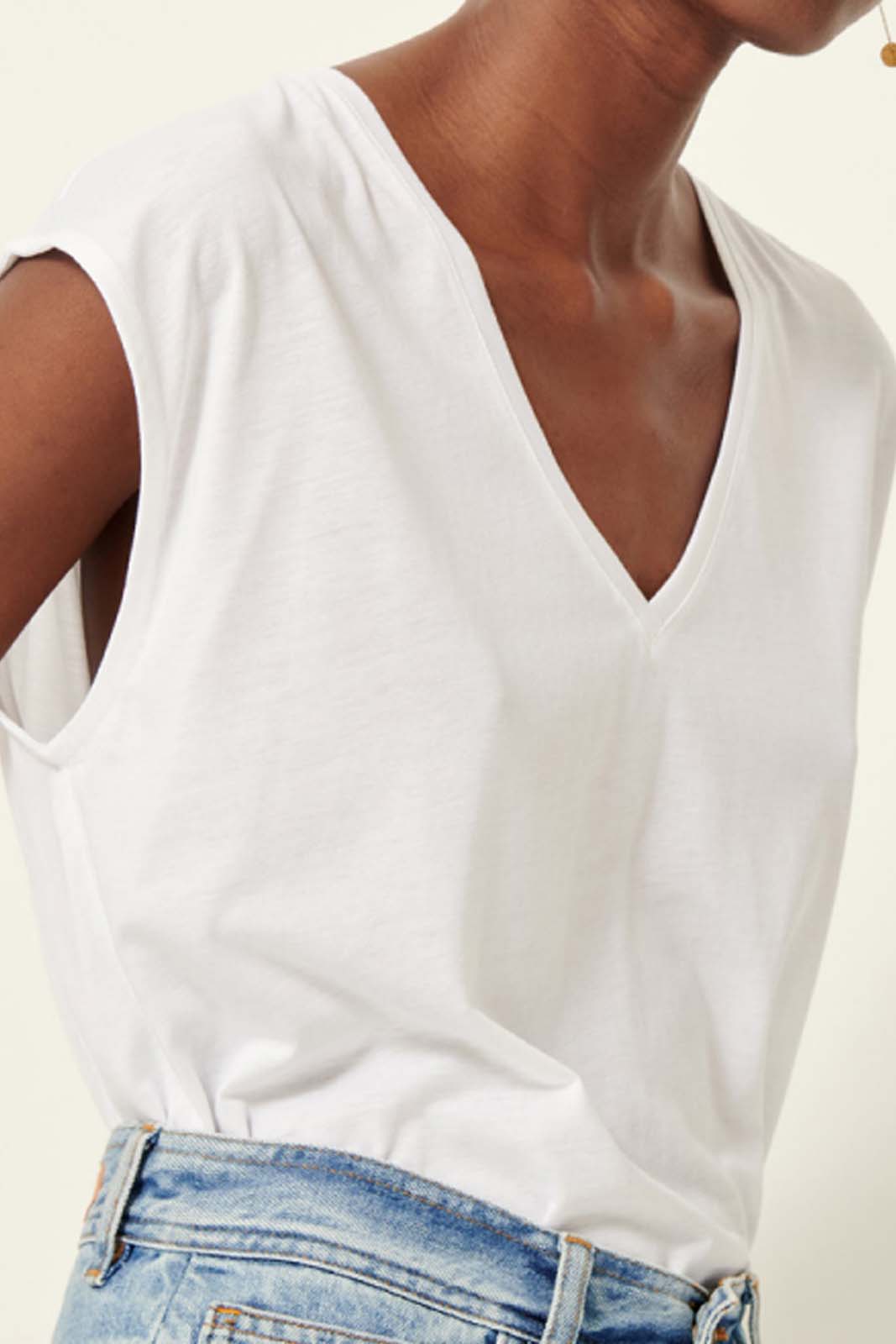 Das T-Shirt The V in der Farbe Optical White von Sessun besteht aus 33% Baumwolle und 67% TENCEL Lyocell.