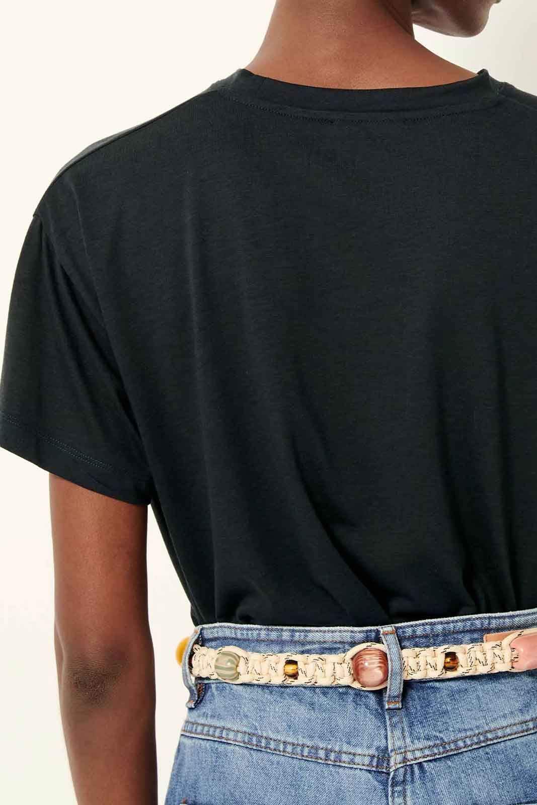 Das locker geschnittene T-Shirt Too in der Farbe Moonless von Sessun besteht aus 33% Baumwolle, 67% Lyocell. (ein weich fließendes Jersey)