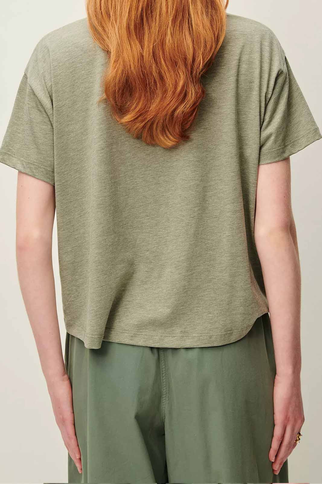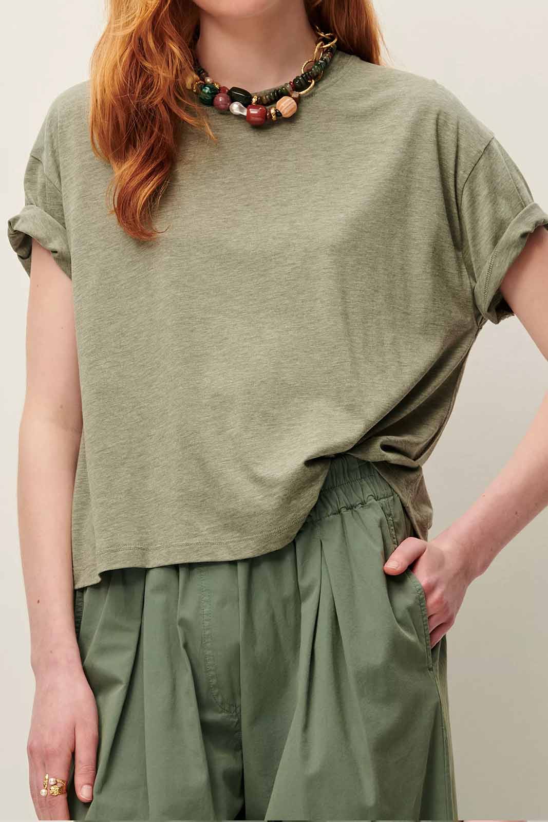 Das locker geschnittene T-Shirt Too in der Farbe Thyme von Sessun besteht aus 33% Baumwolle, 67% Lyocell. (ein weich fließendes Jersey)