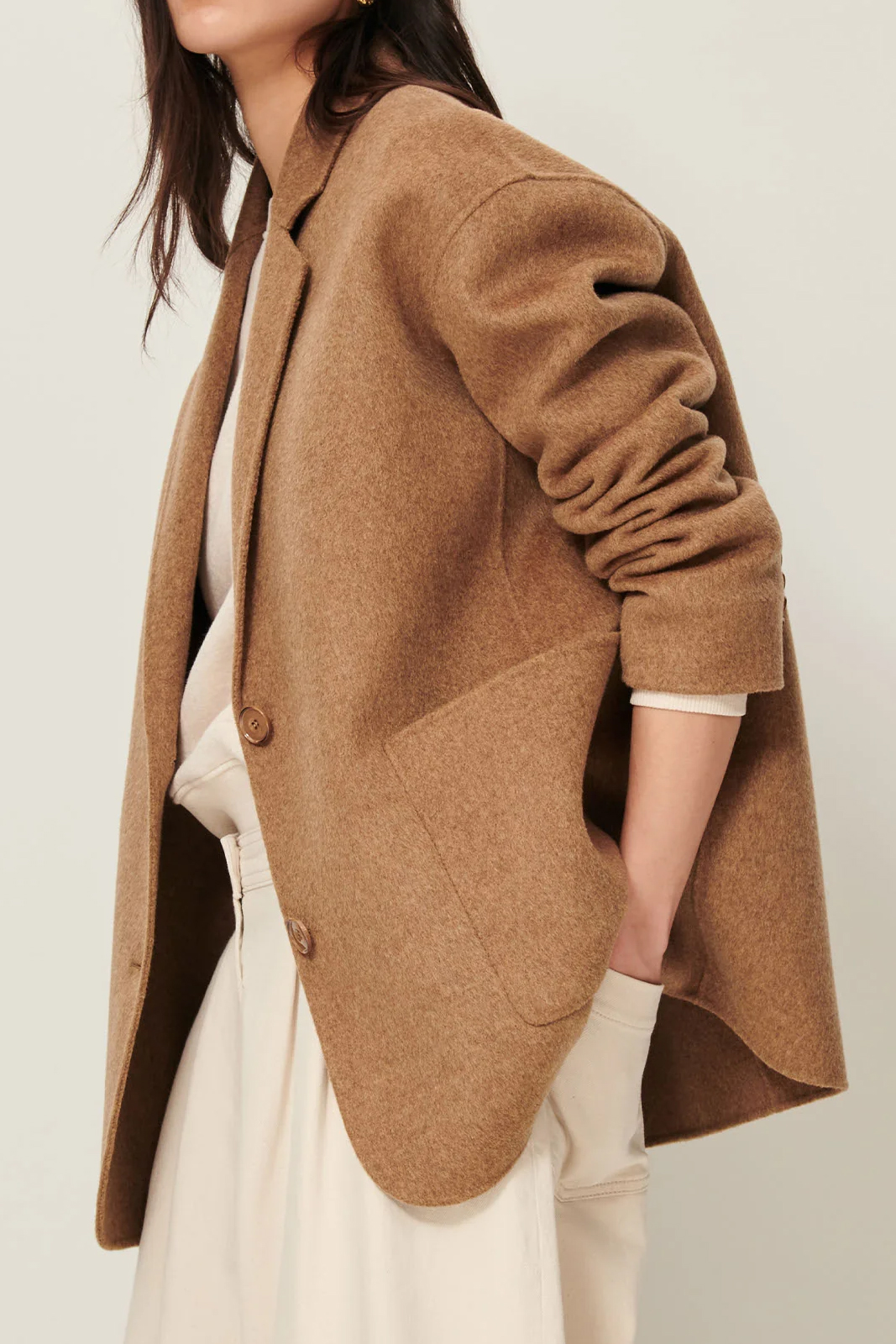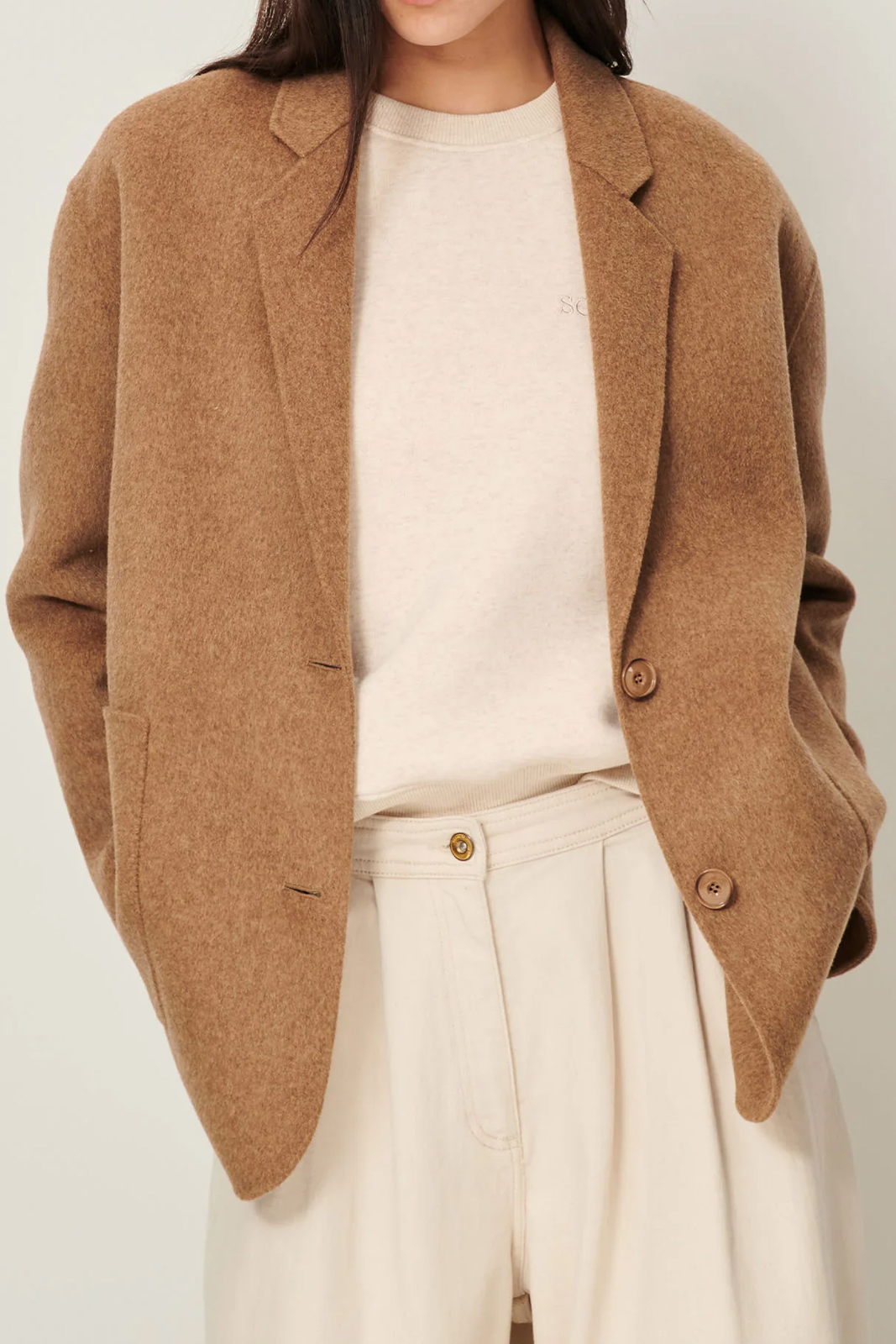 Die Jacke Traniwool in der Farbe Alpaga von Sessun besteht aus 80% Wolle und 20% Polyamid.