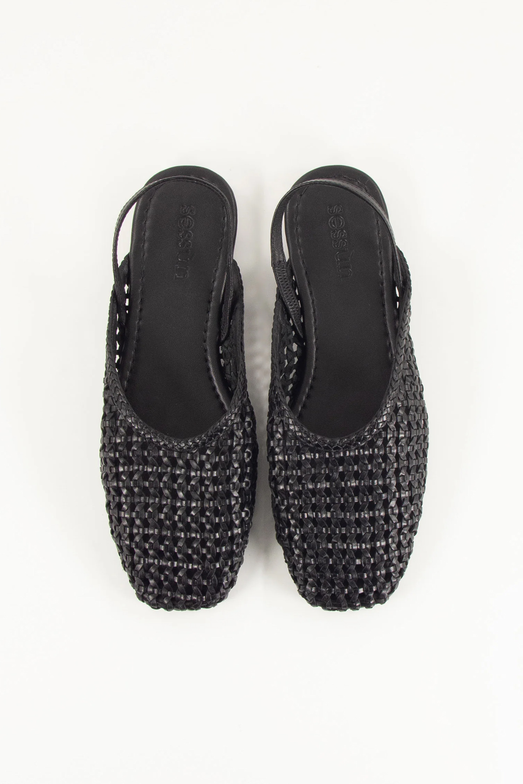 Flache Slingback-Ballerinas aus geflochtenem Rindsleder