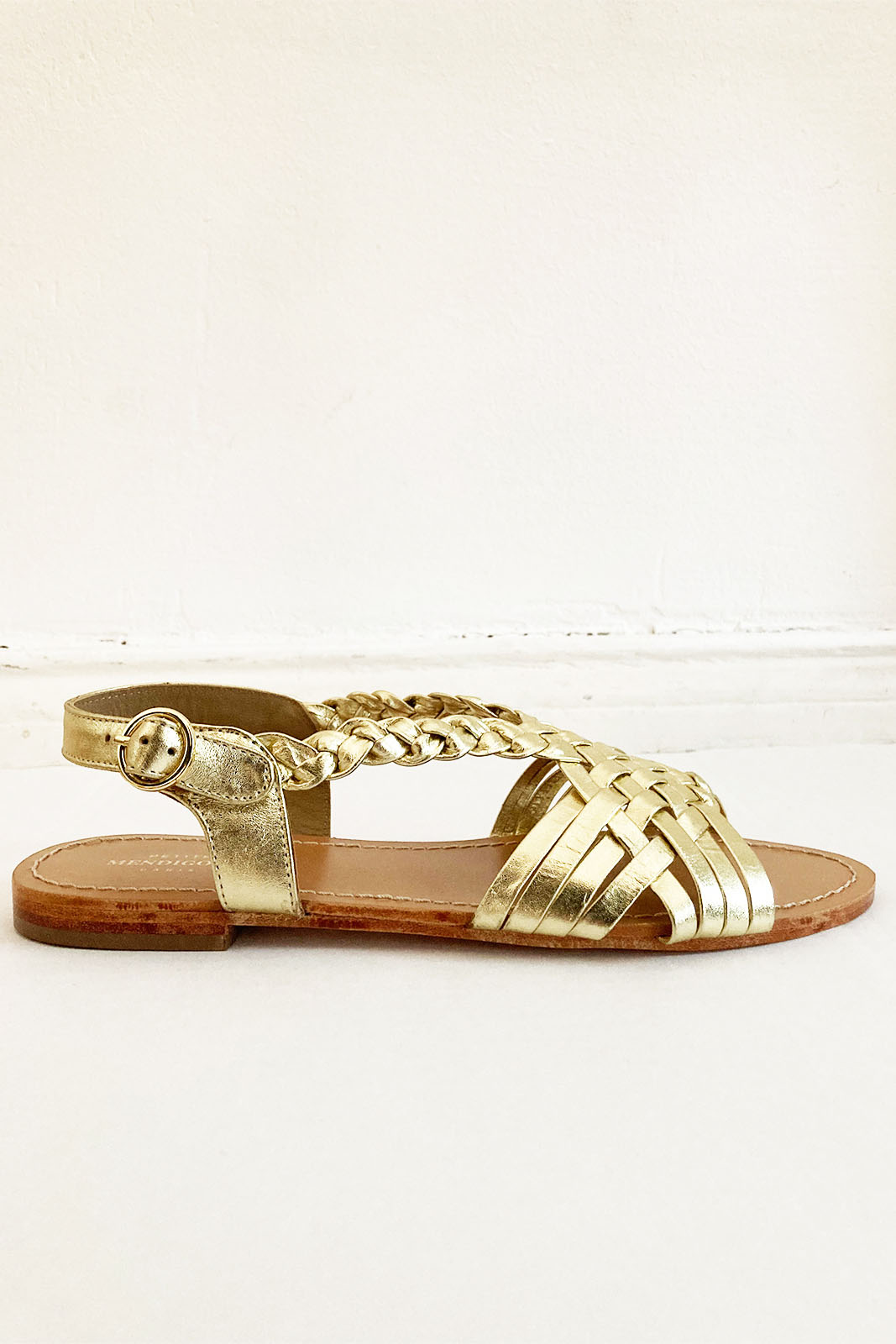 Die Sandale Mendy in der Farbe Gold von Petite Mendigote bestehen aus 100% Leder.