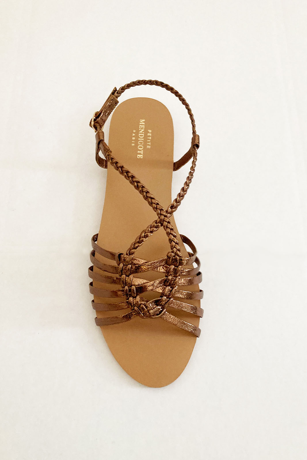 Die Sandale Octavia in der Farbe Antique Brass von Petite Mendigote bestehen aus 100% Leder.