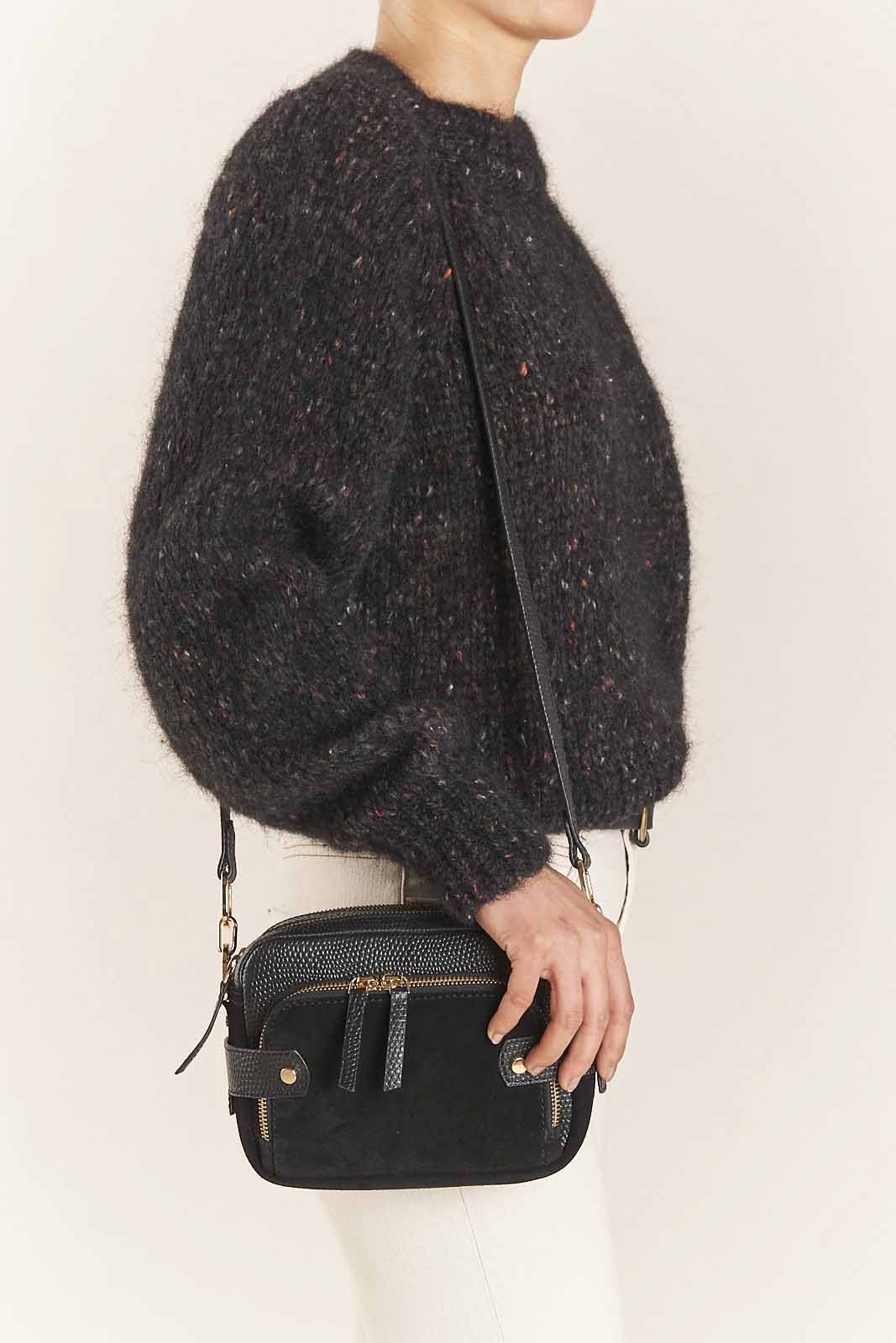 Die Tasche Jimmy in der Farbe Black von Petite Mendigote besteht aus 100% Lezard und Rindsleder.
