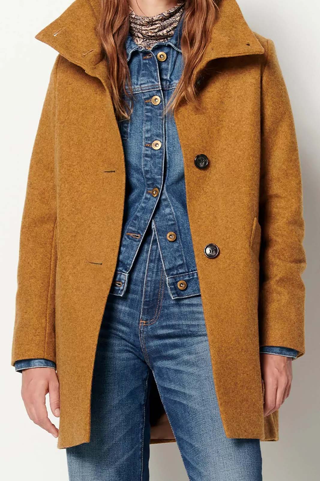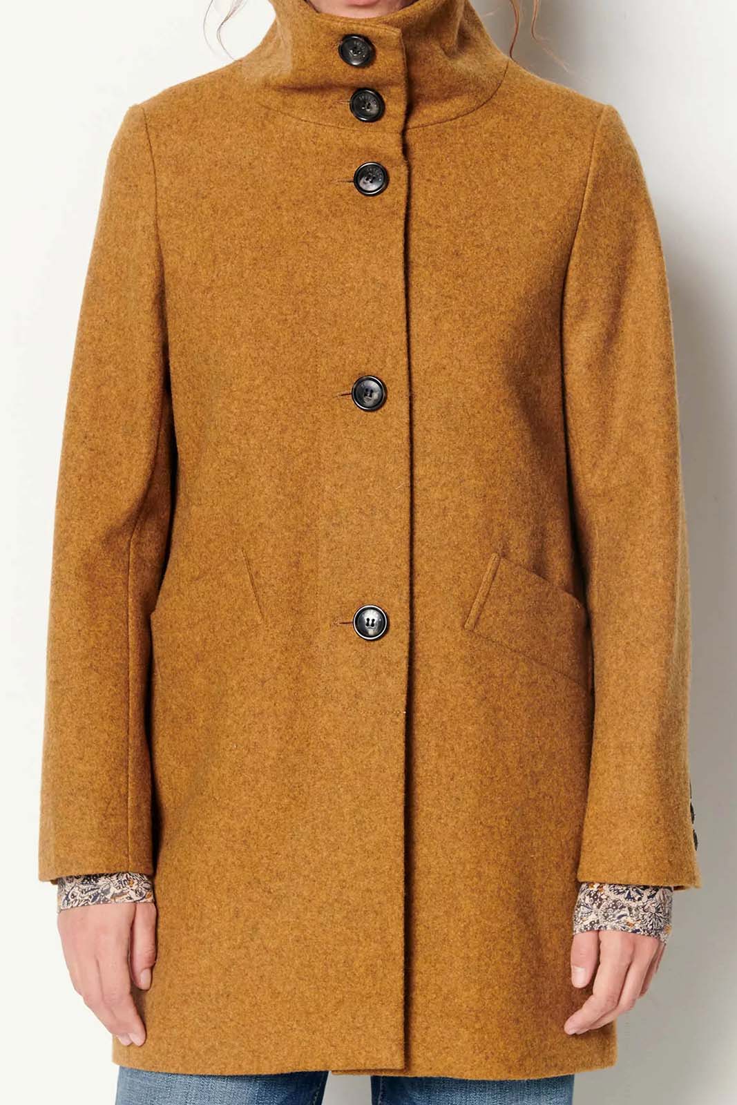 Der Mantel Chera in Mapple von Sessun besteht aus 80% Wolle und 20 % Polyamide.