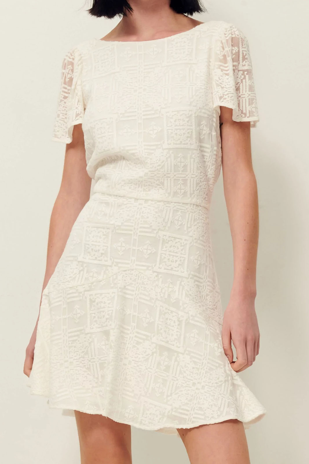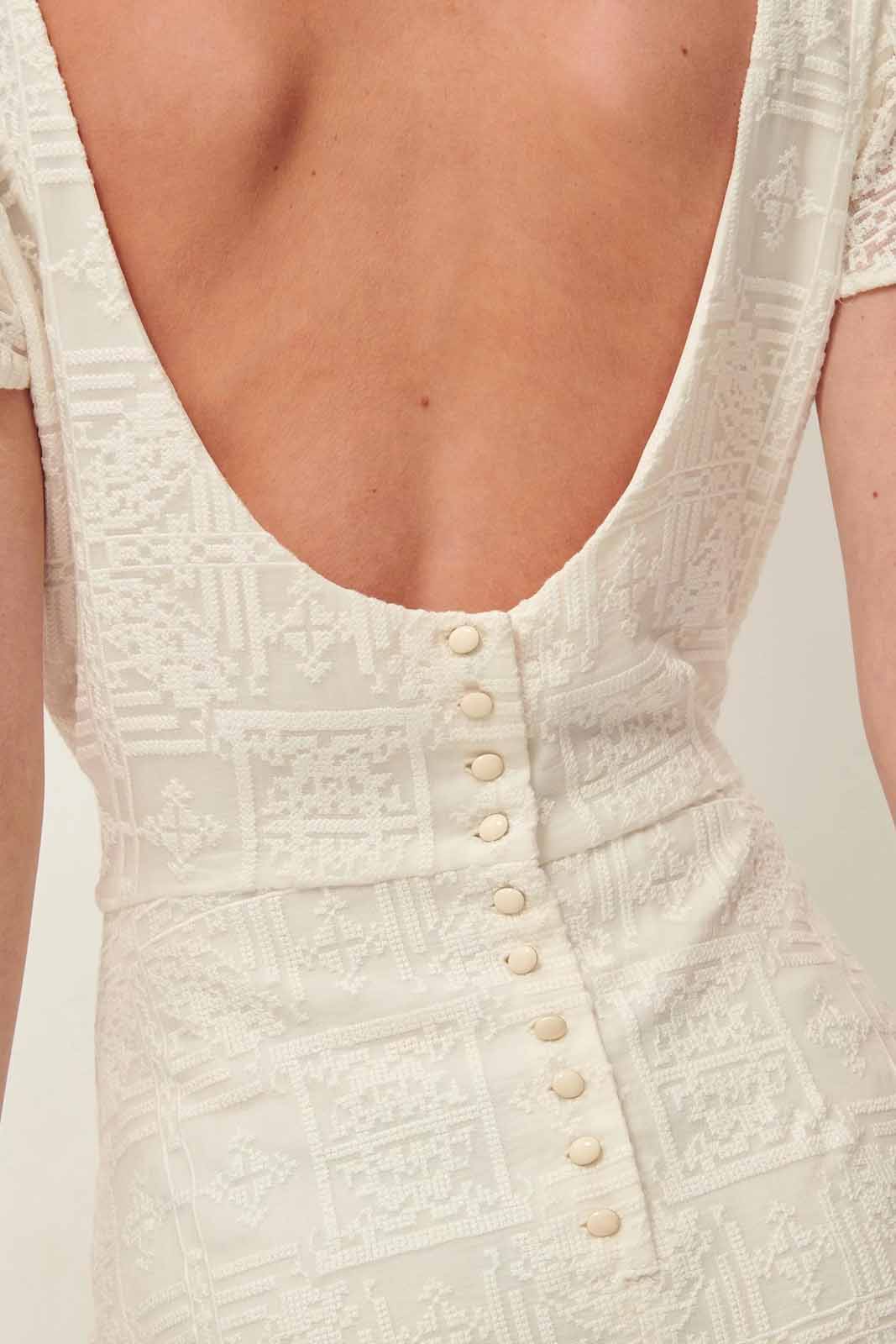 Das Kleid Santa Maria in der Farbe Antic White von Sessun Wedding besteht aus 50% Seide und 50% Viscose.