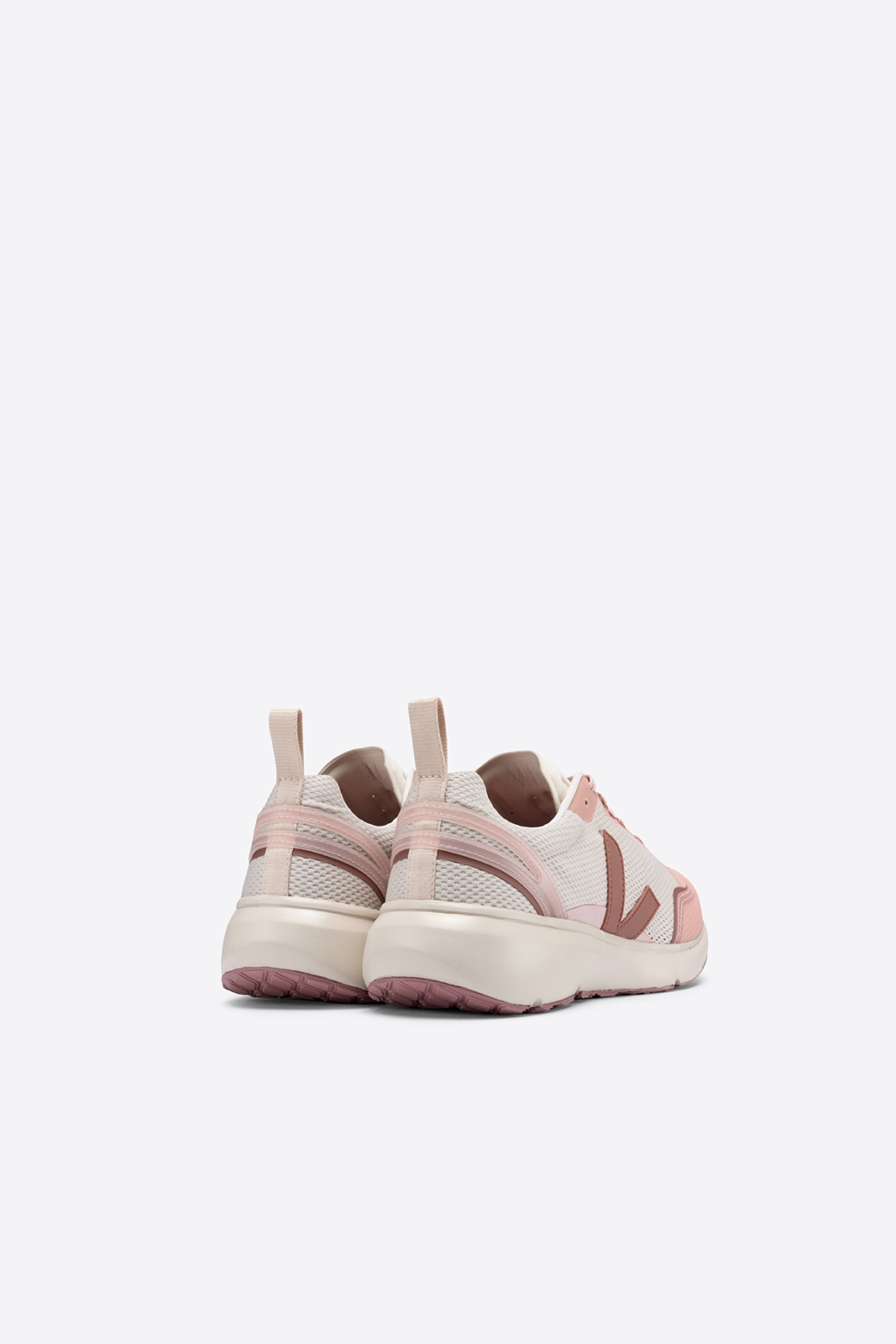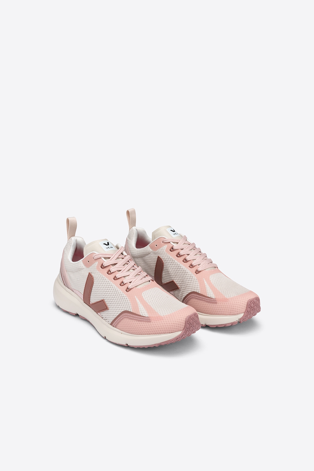 Die Running Schuhe Condor Natural Dried Petal von Veja bestehen aus 53% bio und recycled-base Materialien, unter andere Alveomesh (100% recycled plastic bottle) und wildem Gummi aus Amazonien. DIe Aussensohle wird von Kautschuk aus dem Amazonas Urwald, Abfälle aus der Reisindustrie und synthetischer Kautschuk produziert. Die Innensohle besteht aus Jute, Gummi, recycled plastic bottles, recycled E.V.A und E.V.A. Zwischensohle besteht aus Bananenöl, Zuckerrohr, Abfälle aus der Reisindustrie. Lining aus Jersey, 100% Vegane Schuhe.