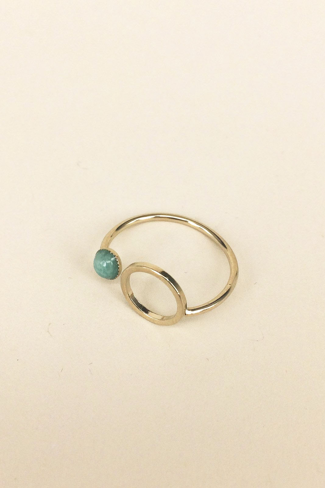 Der Ring Eclipse von Virginie Monroe besteht aus vergoldete Messing und hat ein Amazonite Stein.