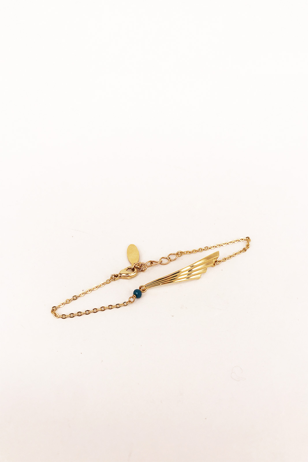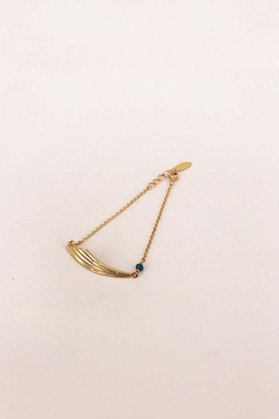 Der Armband Filante in der Farbe Gold mit blauem Stein von Virginie Monroe besteht aus vergoldete Messing.